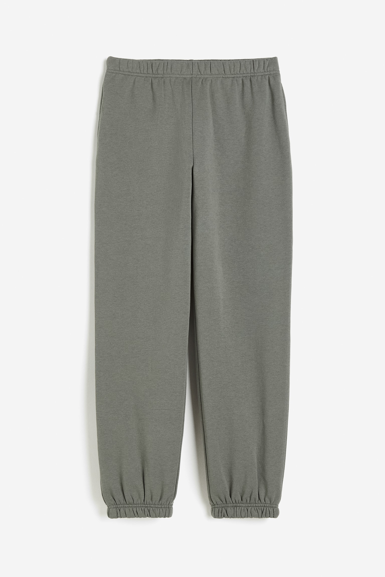 מכנסי טרנינג מבד פוטר עם צד פנימי סרוק ורך. גומי במותן ובשוליים וכיסים נסתרים בצדדים.