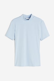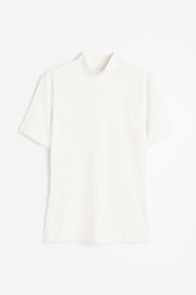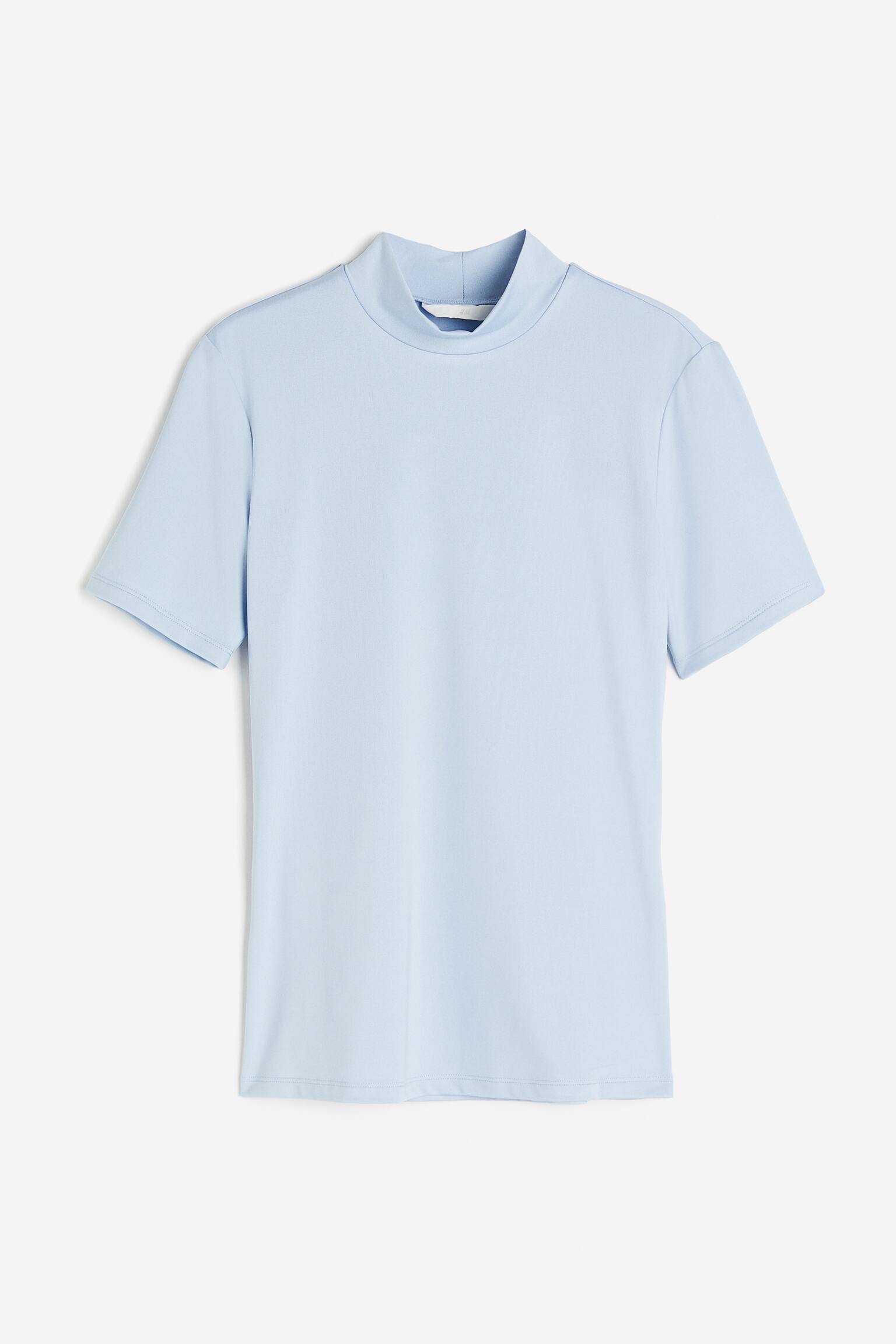 חולצה צמודה מג'רזי סטרץ' עם צווארון חצי גולף ושרוולים קצרים.