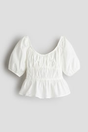חולצה מאריג כותנה אוורירי עם פפלום. צווארון עגול רחב, שרוולים קצרים נפוחים וגומי עם כיווצים בחלק העליון. גומי בקצות השרוולים ובצווארון.