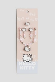 סט הכולל שרשרת, זוג עגילי קליפס וטבעת תואמת עם עיטורי פלסטיק מבריקים והדפס. שרשרת ועגילים עם חרוזים. טבעת בגודל מתכוונן.