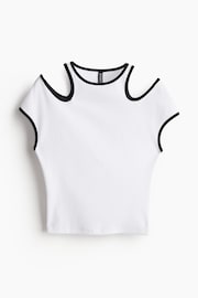 חולצת קרופ צמודה מג'רזי ריב עשוי כותנה עם צווארון עגול, קאט-אאוטים בכתפיים ושרוולים קצרים.