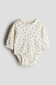 בגד גוף מג'רזי במראה מקומט עם שרוולים ארוכים וצווארון וולנים. פתח בעורף הנרכס בתיקתק ותיקתקים במפשעה להחלפת חיתול נוחה. סיומת סלסולים בצווארון ובחפתים. תפרים עם כיווצים במפתחי הרגליים העוטפים את החיתול בנוחות.