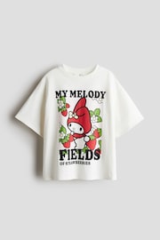 טישירט אוברסייז מג'רזי כותנה רך עם הדפס. צווארון עגול בסיומת ריב וכתפיים נמוכות.