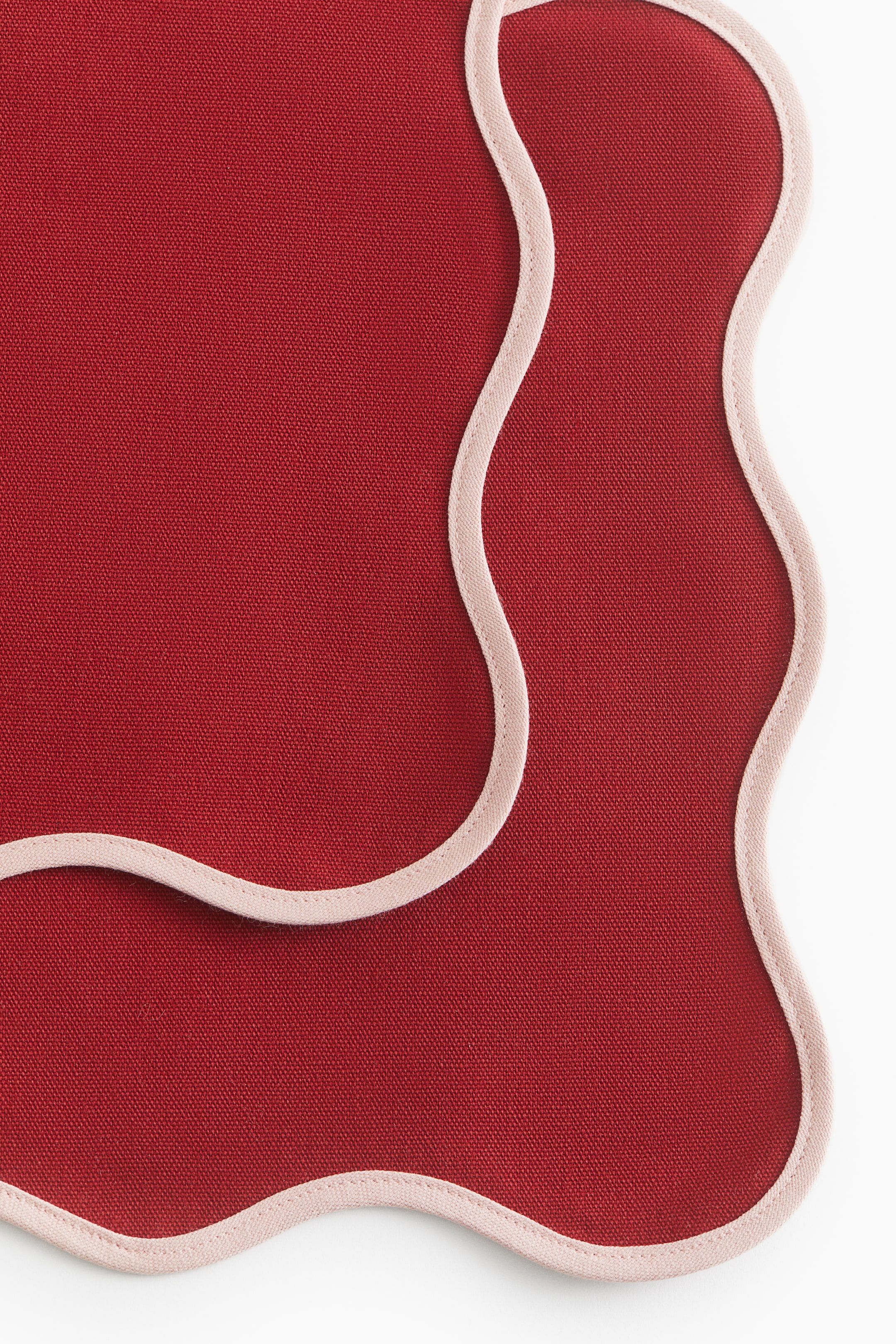 פלייסמטים מאריג כותנה עם ציפוי דוחה מים המאפשר לנקות אותם בקלות. שוליים גליים עם פס בצבע מנוגד.
