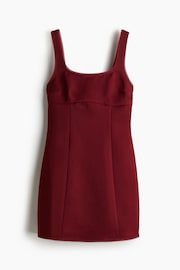 שמלה קצרה עם מחשוף מרובע, כתפיות רחבות ותיפורים בחזית ומאחור. רוכסן נסתר בצד, חלק עליון צמוד וחצאית מתרחבת.