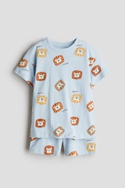 פיג'מה מג'רזי כותנה רך עם הדפס. חולצה עם שרוולים קצרים, צווארון ריב עגול וכתפיים נמוכות. מכנסיים קצרים עם גומי במותן.