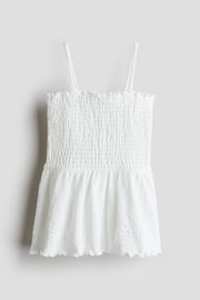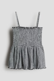 גופייה מג'רזי עם טקסטורה. כיווצים בחלק העליון וסיומת סלסולים בשוליים. מפתח צוואר מרובע, כתפיות צרות ופפלום.