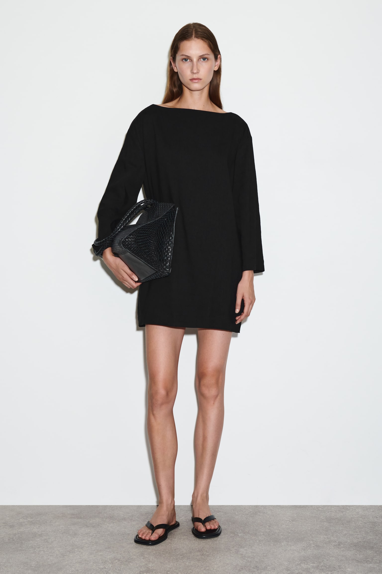 MERINO WOOL BUTTONED SHIFT MINI DRESS