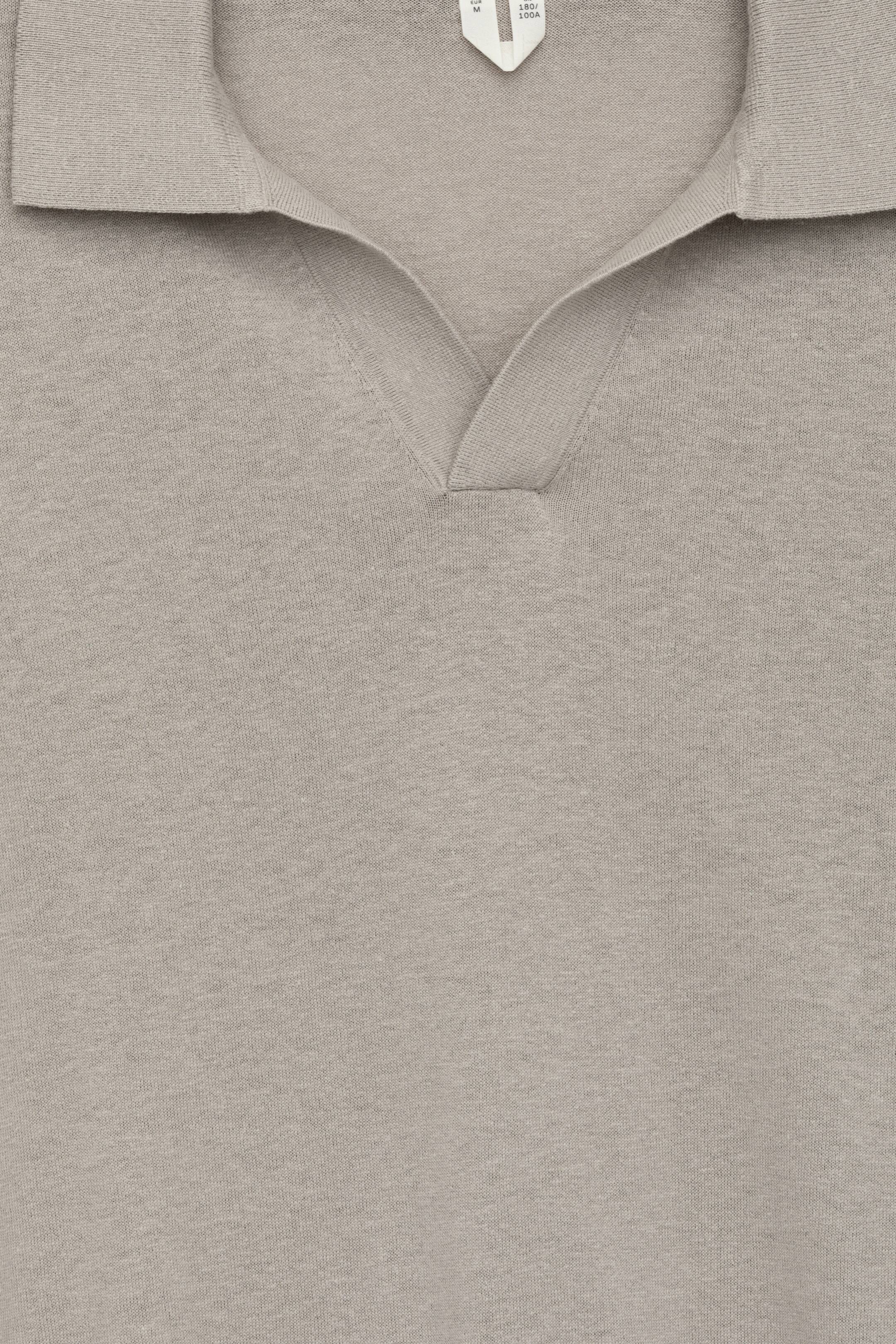 The blend of linen and cotton gives a soft, cooling comfort to this fine-knit polo shirt. A casual, short-sleeve style detailed with a rib-knitted collar and a V-neck. Regular fit. Plain jersey knit, 16 gauge Ribbed trimmings Men > T-shirts > Polos