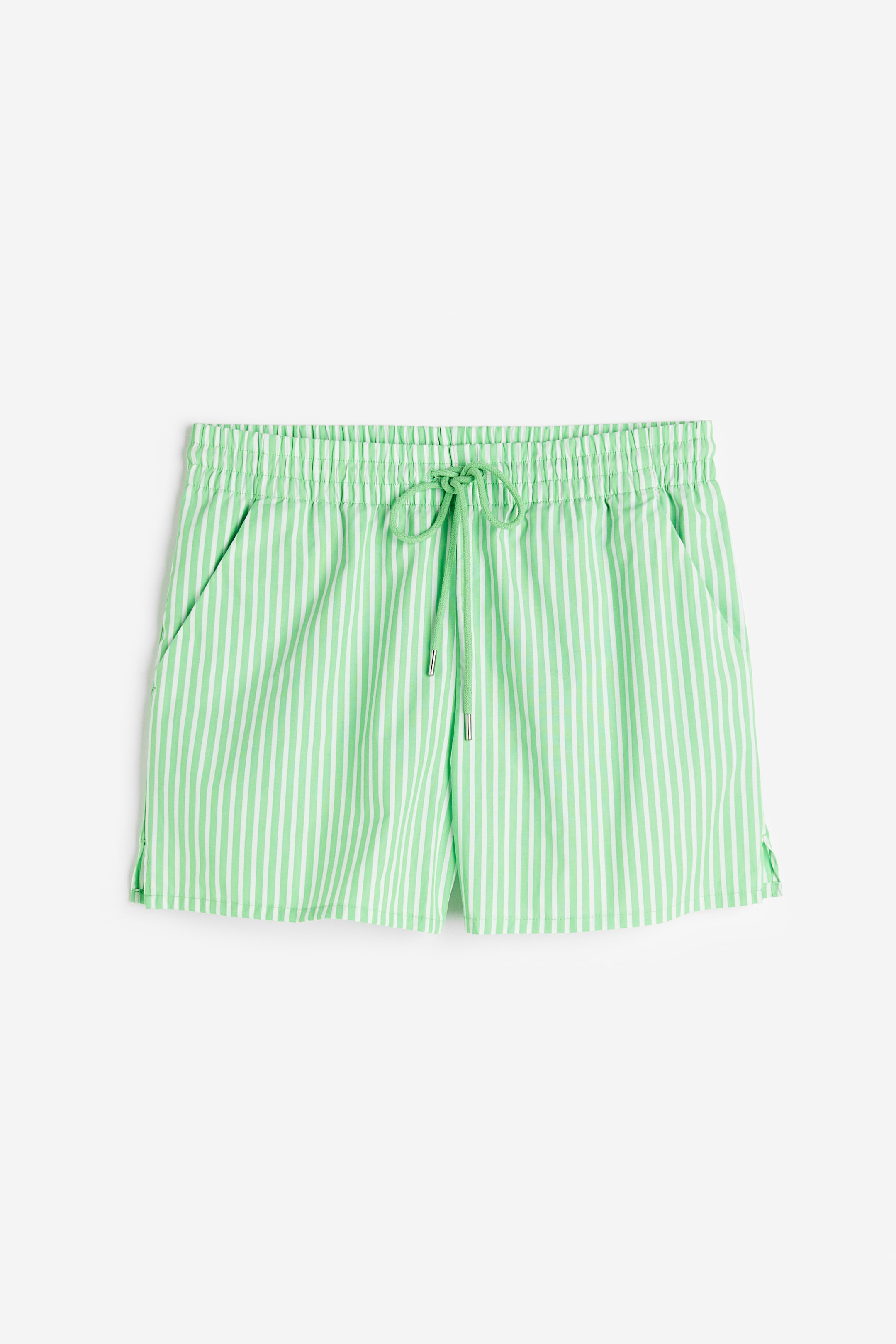 Shorts ampi in tessuto con elastico rivestito e coulisse in vita. Tasche laterali oblique, piccolo spacco in basso.