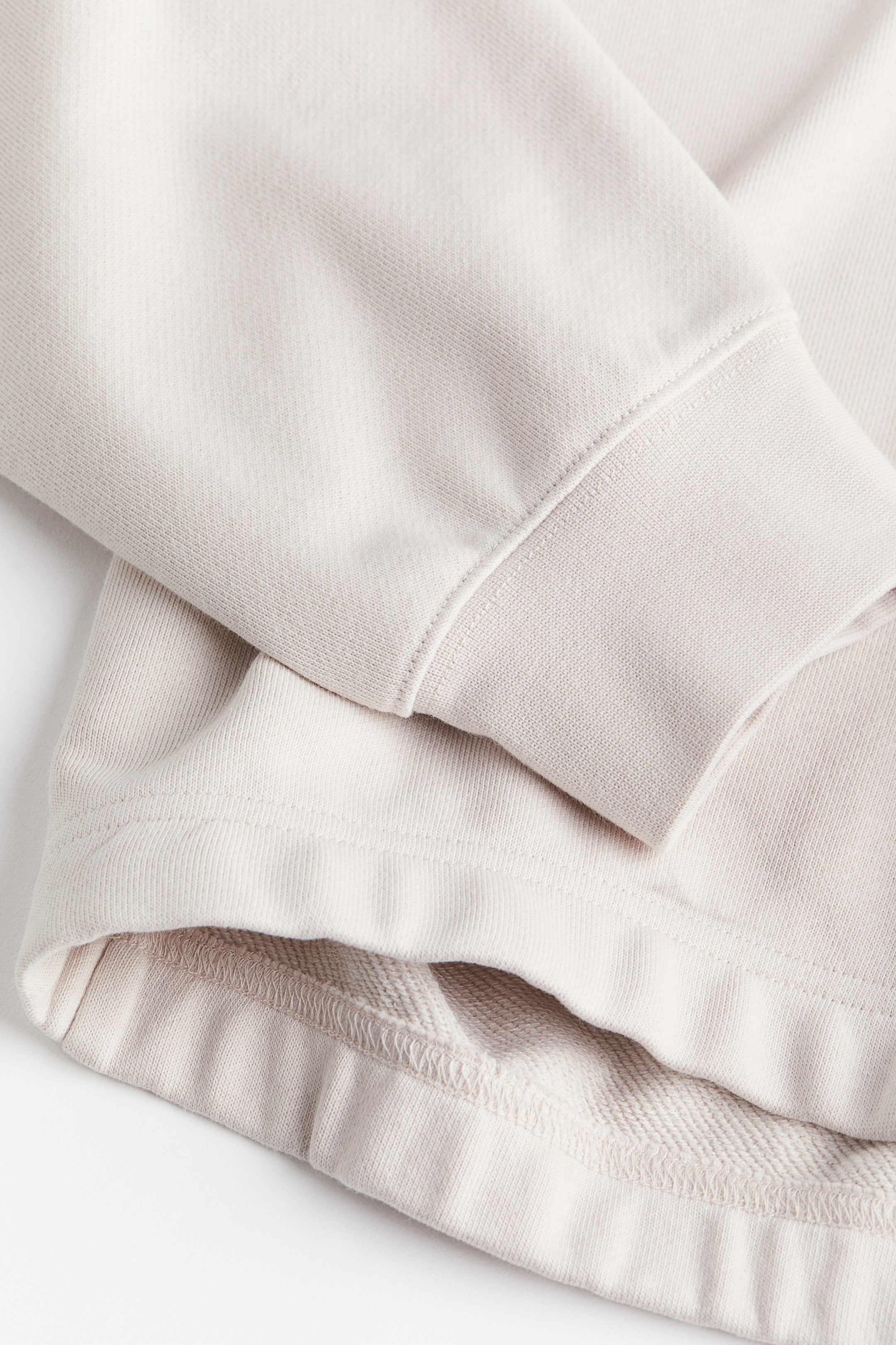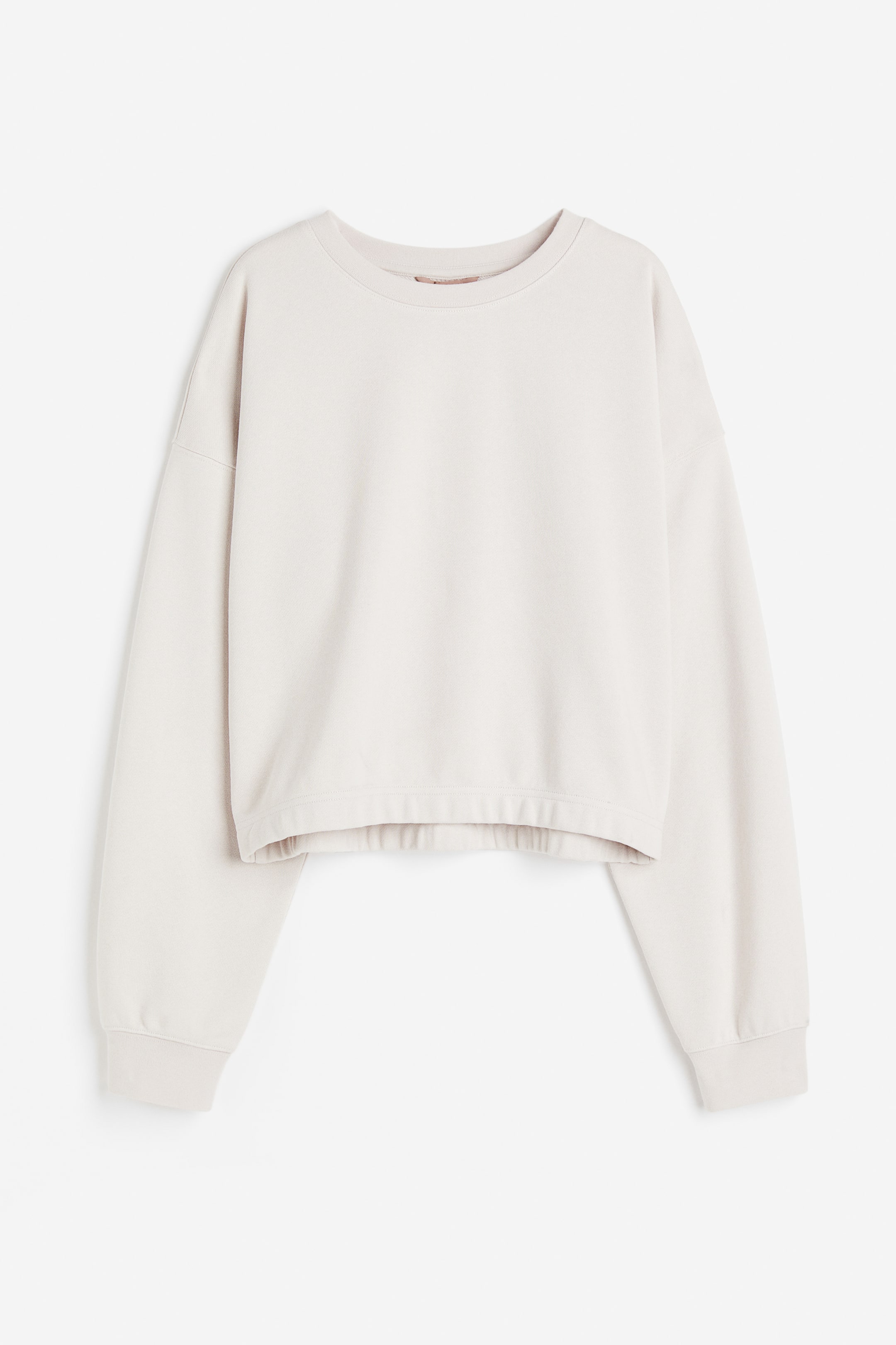 Maglia in tessuto felpato di misto cotone. Linea ampia con scollo arrotondato, spalle basse e maniche lunghe. Bordo a costine sullo scollo e a fondo manica. Morbido interno spazzolato.