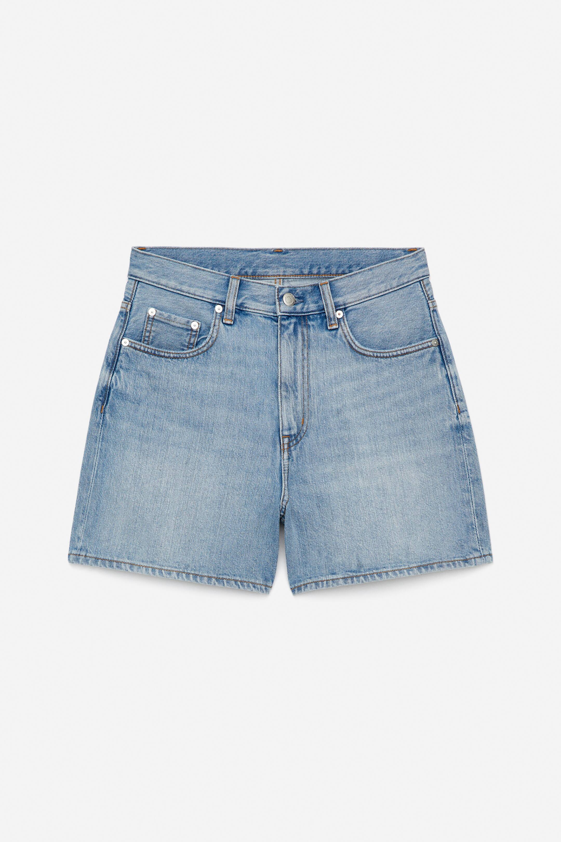 Five-pocket shorts cut from a rigid denim twill. A mid-waist style with a regular fit, cut to fall to a mid-thigh length. Inside leg length 11.2 cm (size 28).