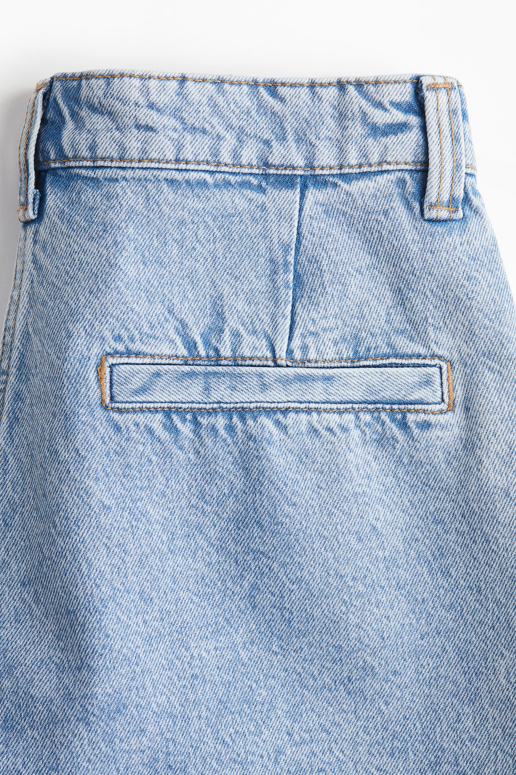 Shorts in denim di cotone rigido, lunghezza al ginocchio. Patta con cerniera e bottone. Tasche laterali oblique, tasche dietro a filetto e pinces davanti.