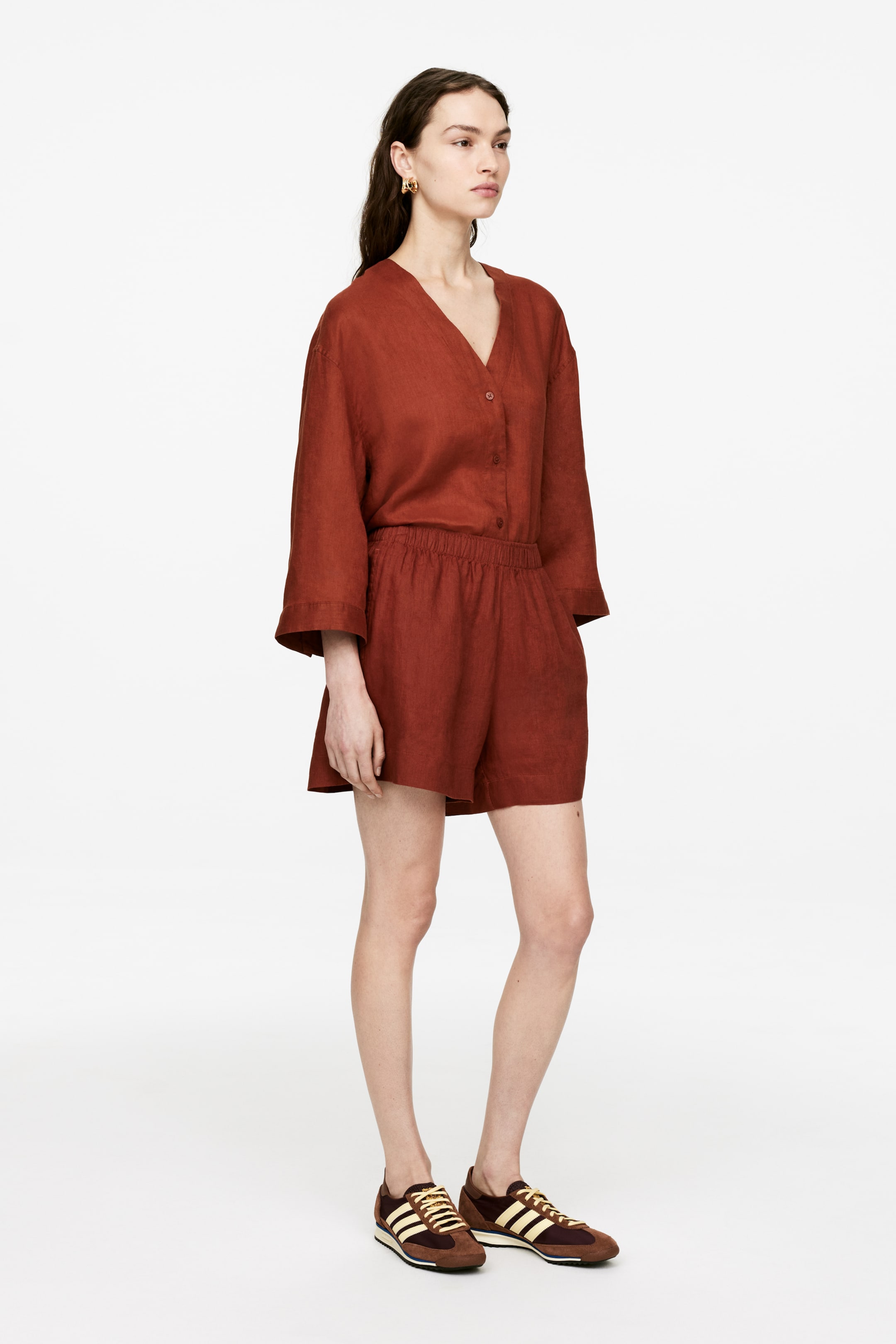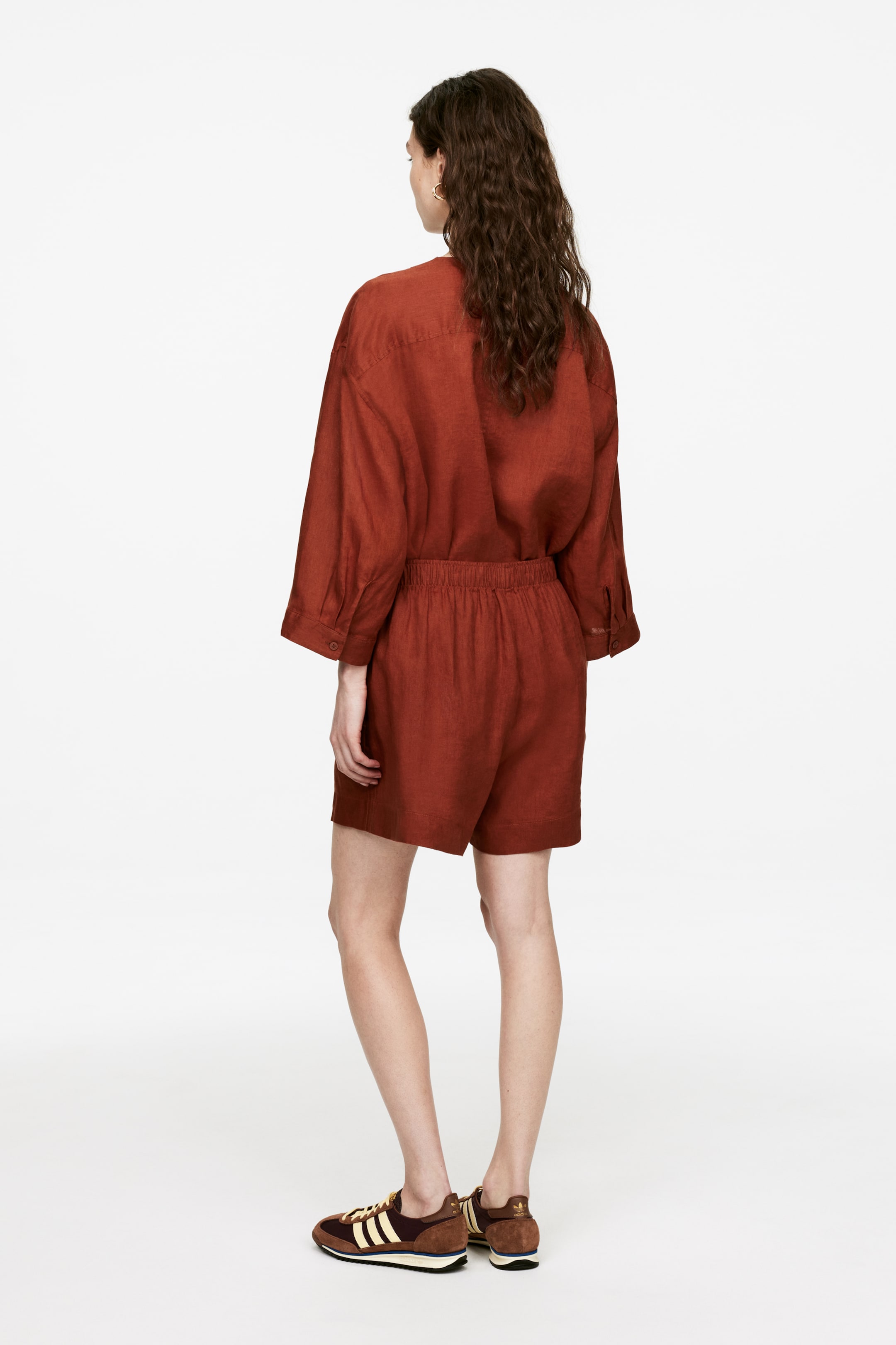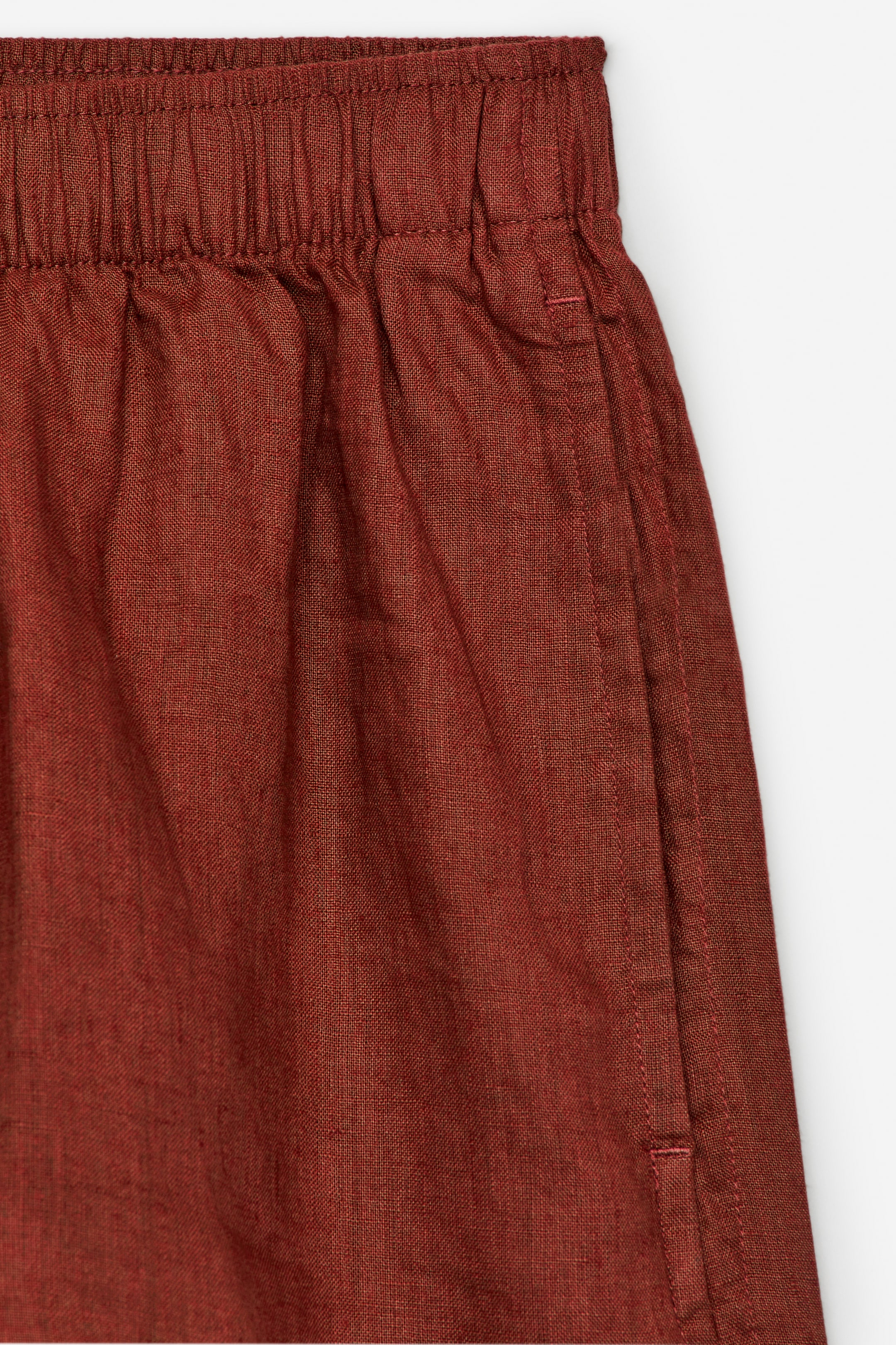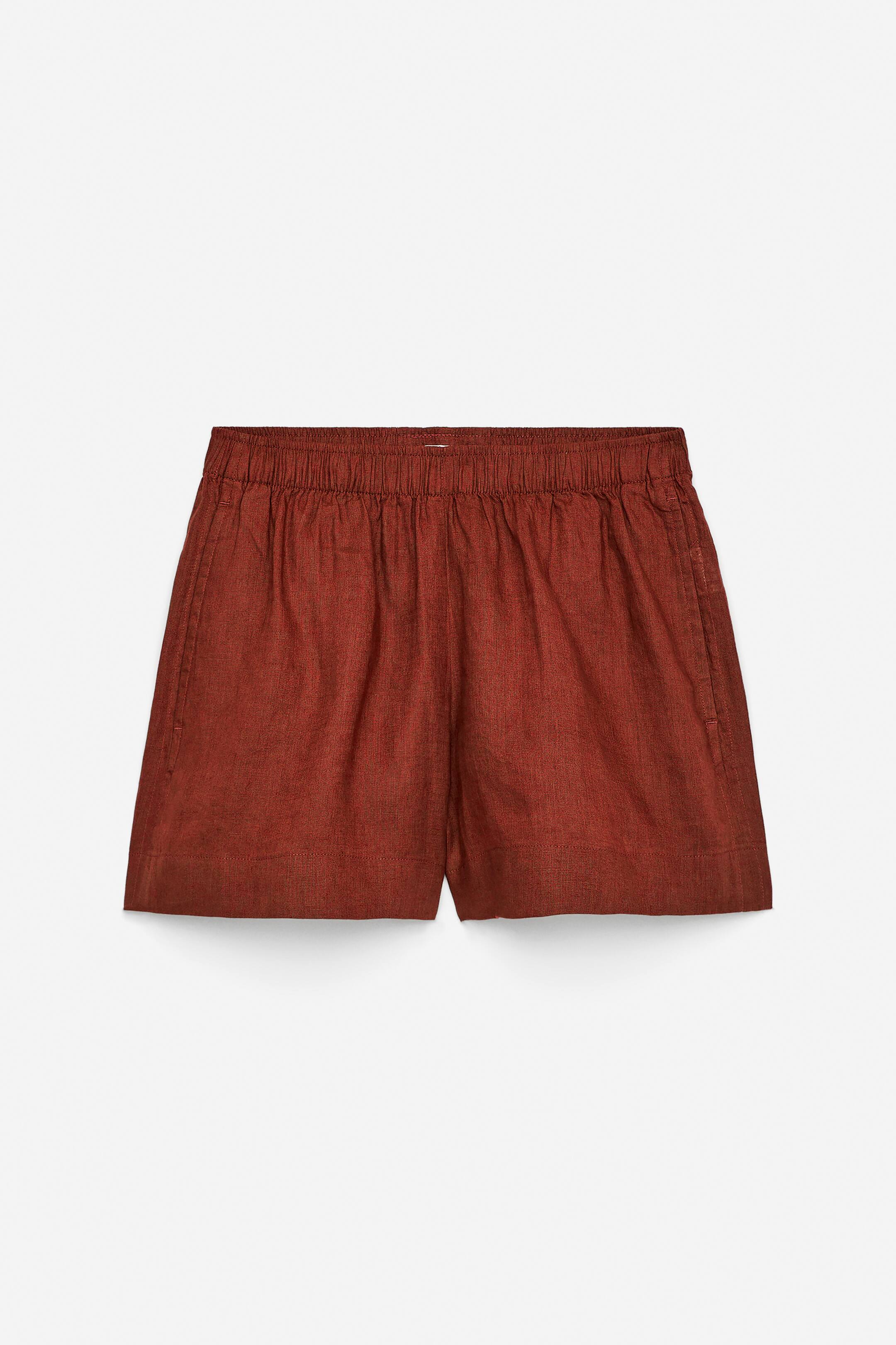 Linen shorts with elastic at the waist and pockets in the side seams.
