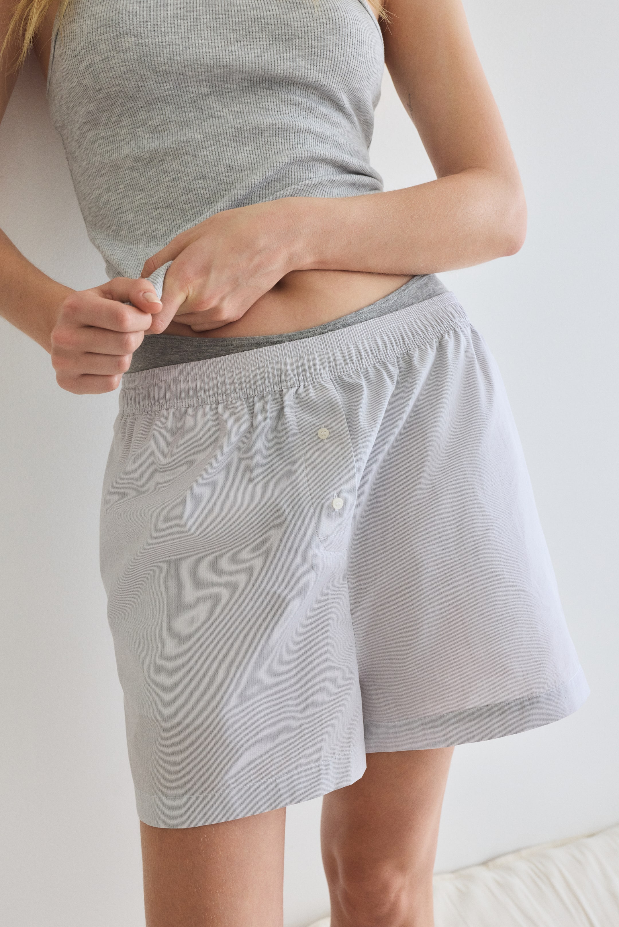 Shorts in fresco popeline di cotone con elastico a smock in vita e finta patta con bottoni decorativi. Tasche laterali seminascoste.