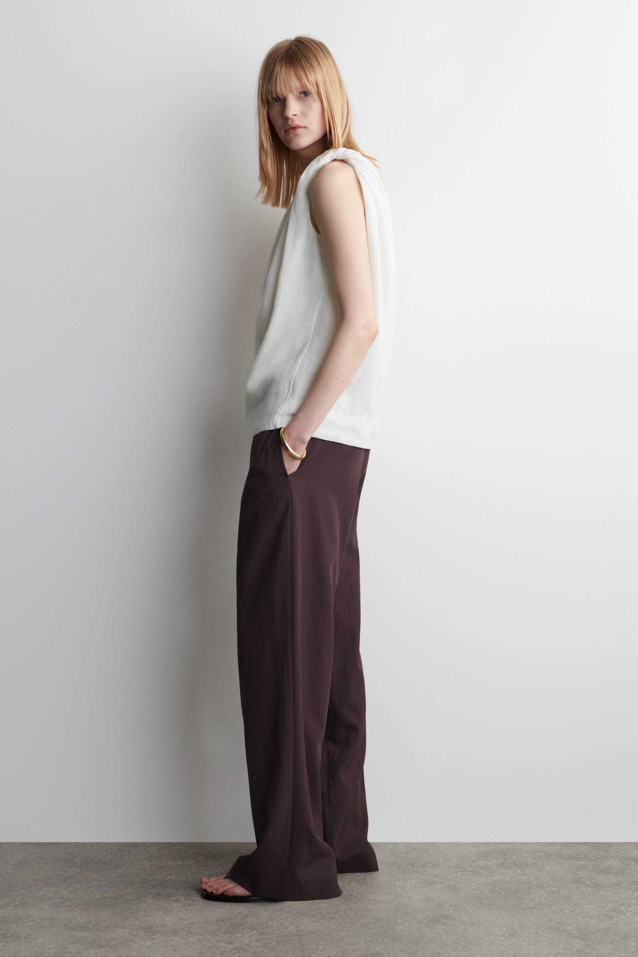 The womenswear team reimagine signature shapes through a modern lens. Defined by a twisted detail at the shoulder, this refined top is crafted from tactile, naturally light linen and rendered in a crisp white tone. Regular fit Recycled linen is linen deriving from textile waste in production or from end-of-life textile waste. The waste is mechanically recycled and spun into new yarn Shell: 70% Linen, 30% Recycled linen. Excluding trims / Machine wash Back length of size EU 36 is 63cm / Model wears a size EU 36