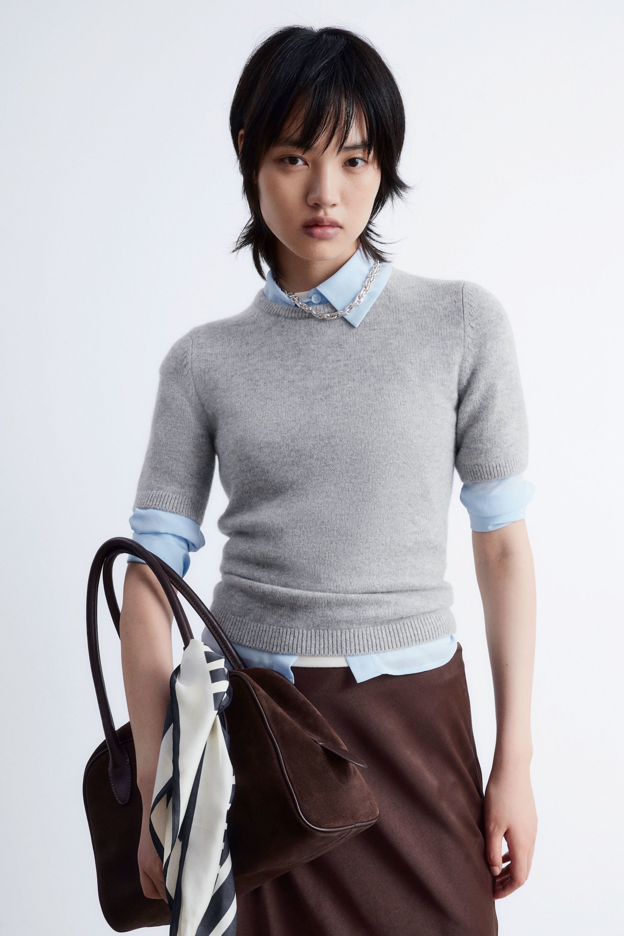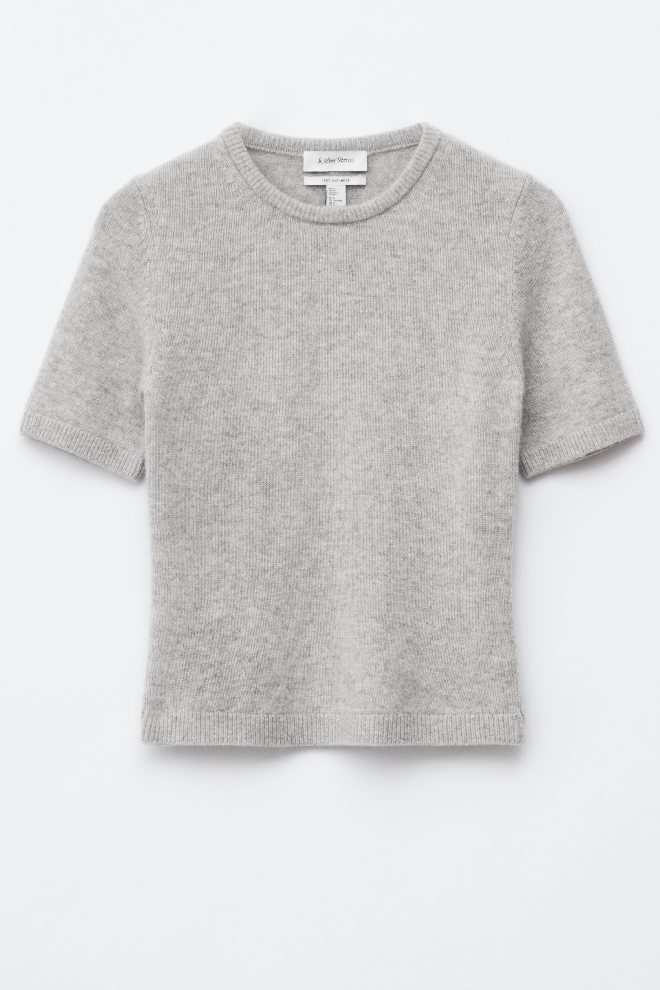 This T-shirt is knitted from 100% pure cashmere, offering a soft, textured feel. Designed in a fitted silhouette, it features a round neck, short sleeves, and ribbed trims. Length of T-shirt:54cm / 21.3" (Size S)