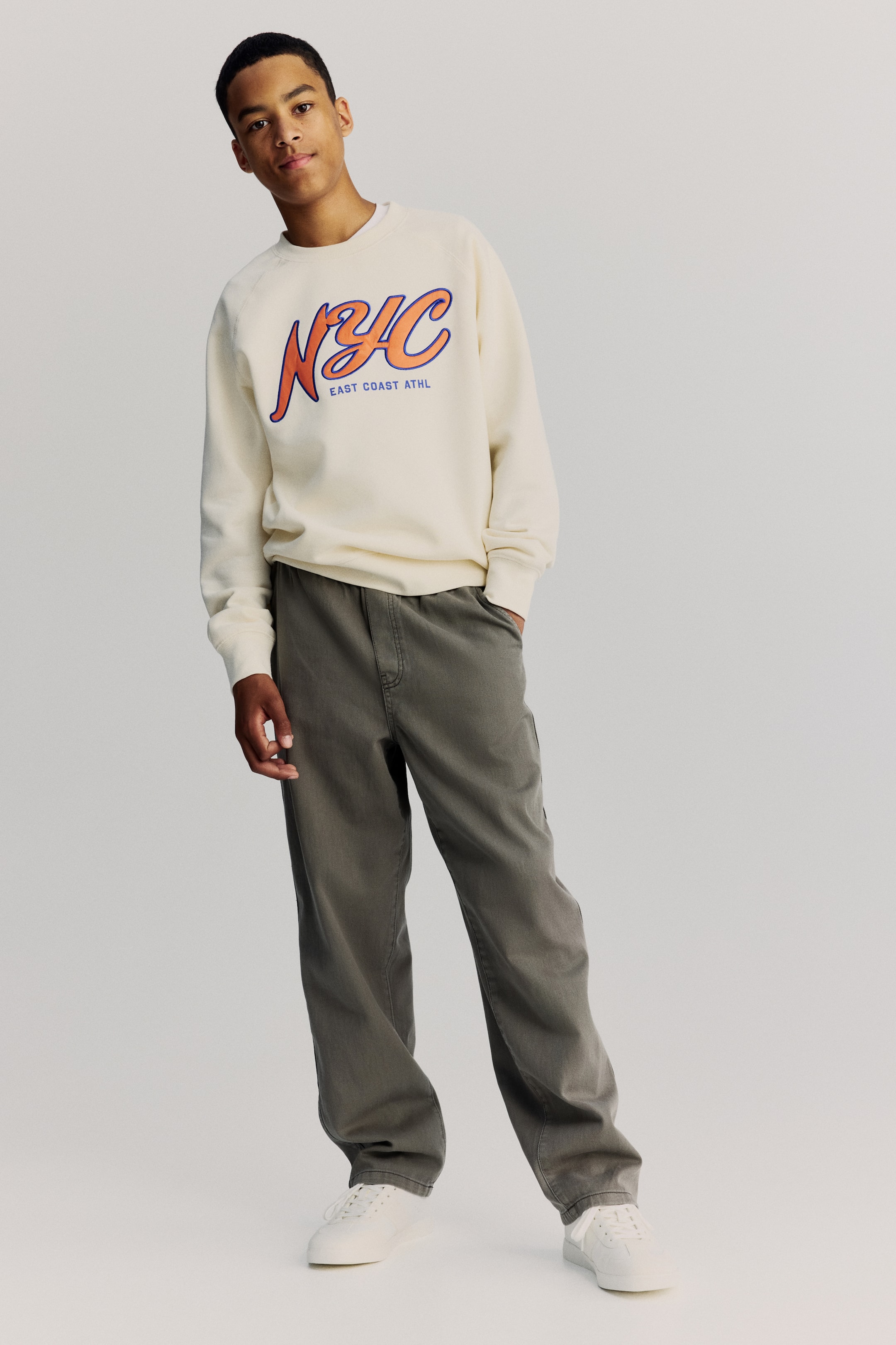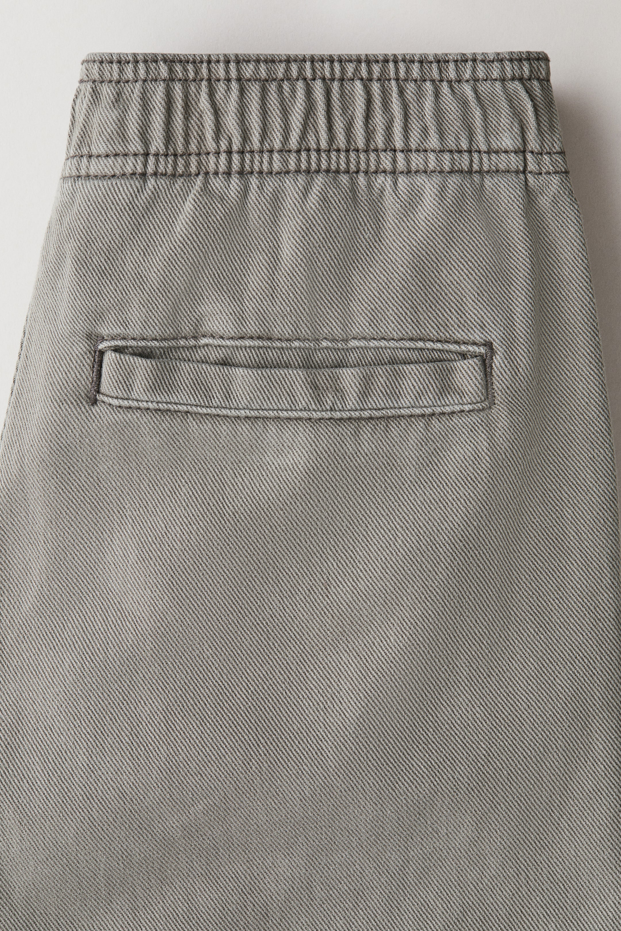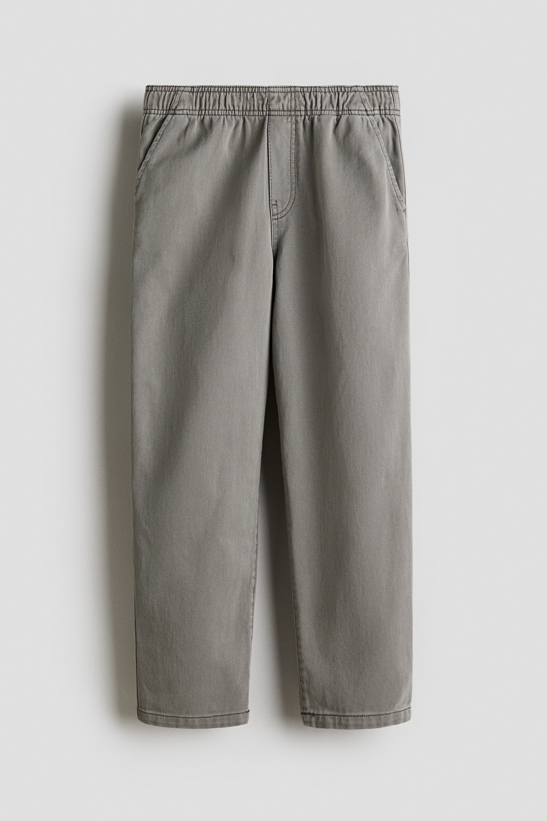 Joggers in morbido twill di cotone. Linea ampia su fianchi e cosce, gamba leggermente a sigaretta. Vita con elastico e coulisse nascosta, finta patta. Tasche laterali oblique, tasche dietro a filetto.