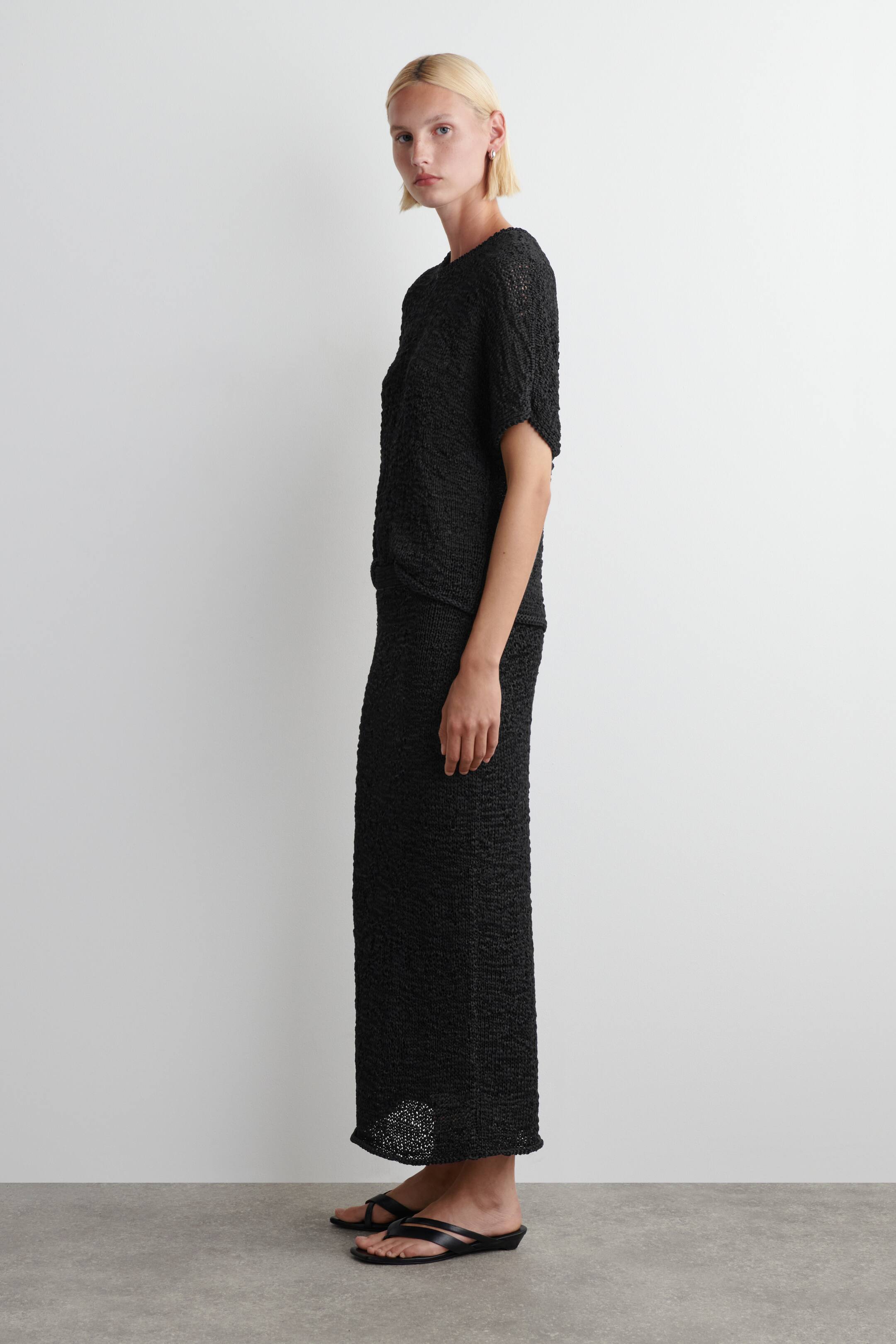 TEXTURED OPEN-KNIT MIDI SKIRT