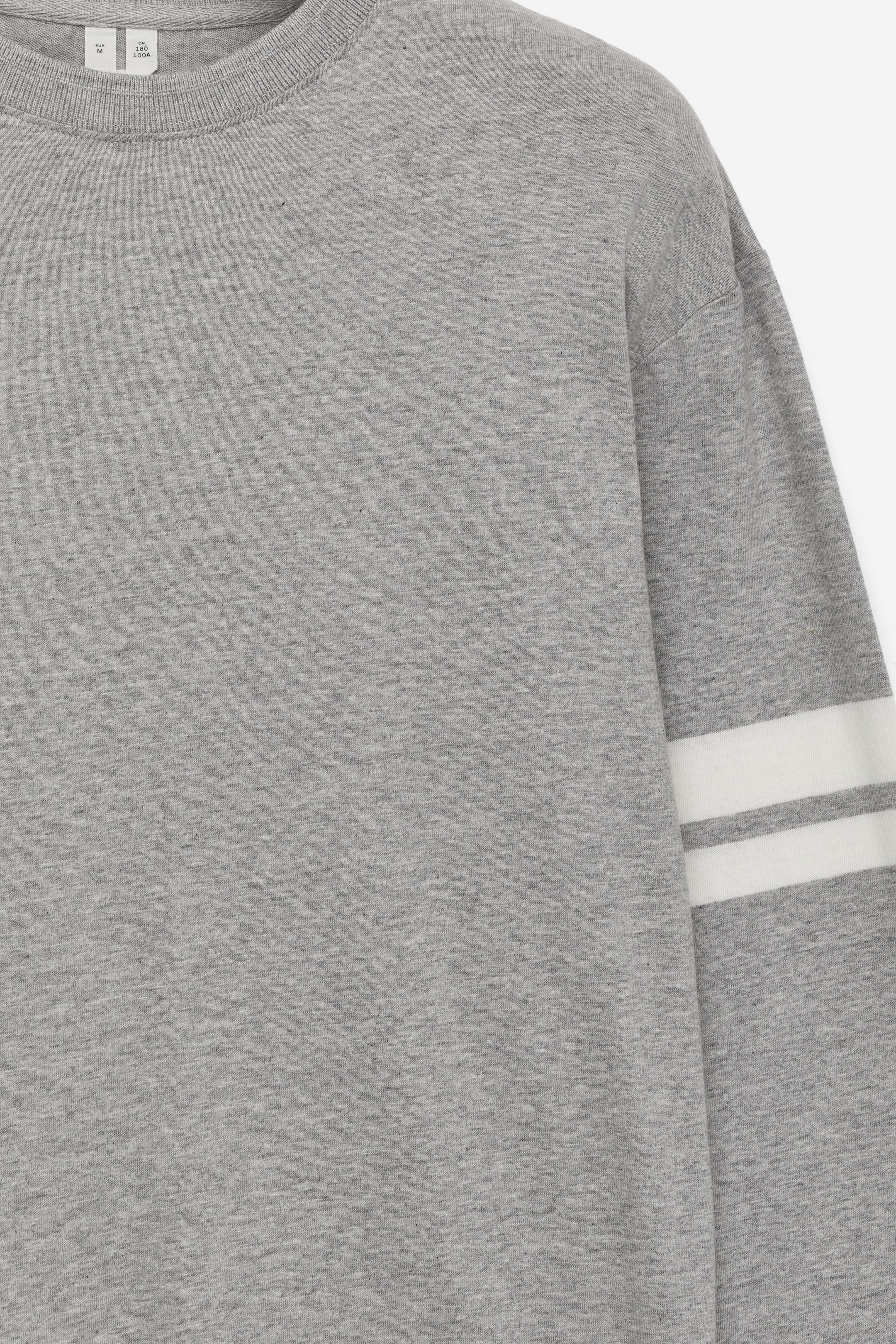 Long-sleeve T-shirt cut for a regular fit. A crewneck style with ribbed trimmings at neckline and cuffs. Slits at side seams. Yarn-dyed stripes at sleeves.
