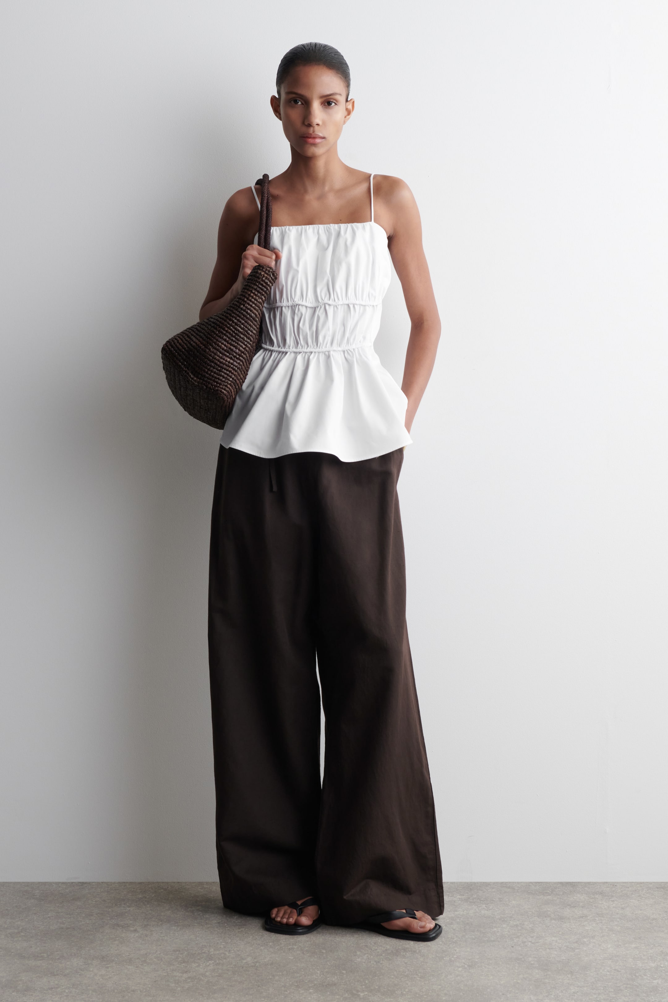 This season, the womenswear team reimagine pared-back silhouettes through ruching techniques. This top is crafted from lightweight Pima cotton and features a gathered bodice, slender straps and an open V-back with tie detailing. Regular fit Shell: 100% Pima cotton. Excluding trims / Machine wash Back length of size EU 36 is 32cm / Model wears a size EU 36
