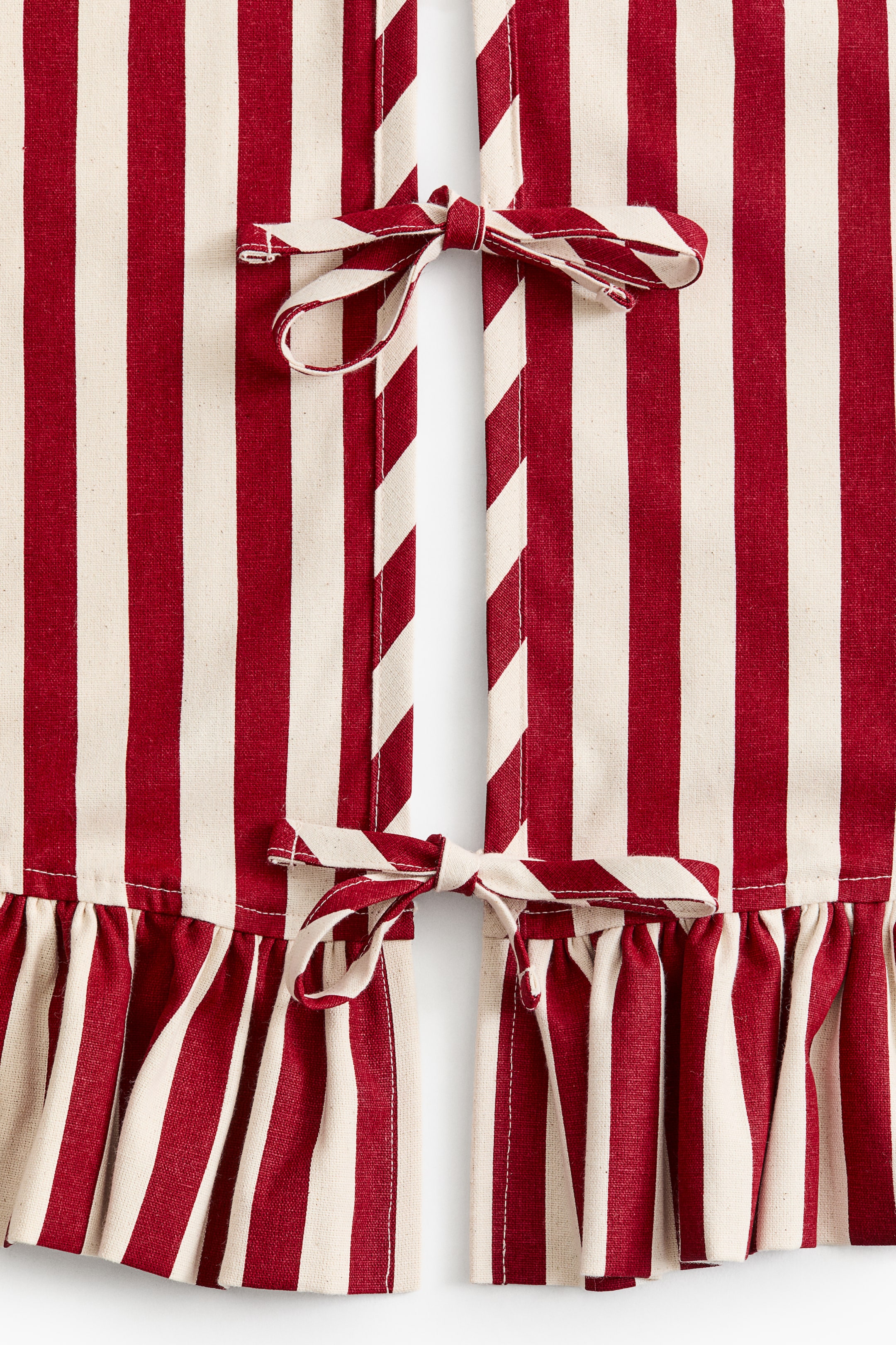 Tappetino per l'albero di Natale in tessuto di cotone con bordo a volant, nastrini per fissare la base attorno al tronco e per nascondere la base. Si può usare anche come normale tappetino su cui appoggiare l'albero di Natale.
