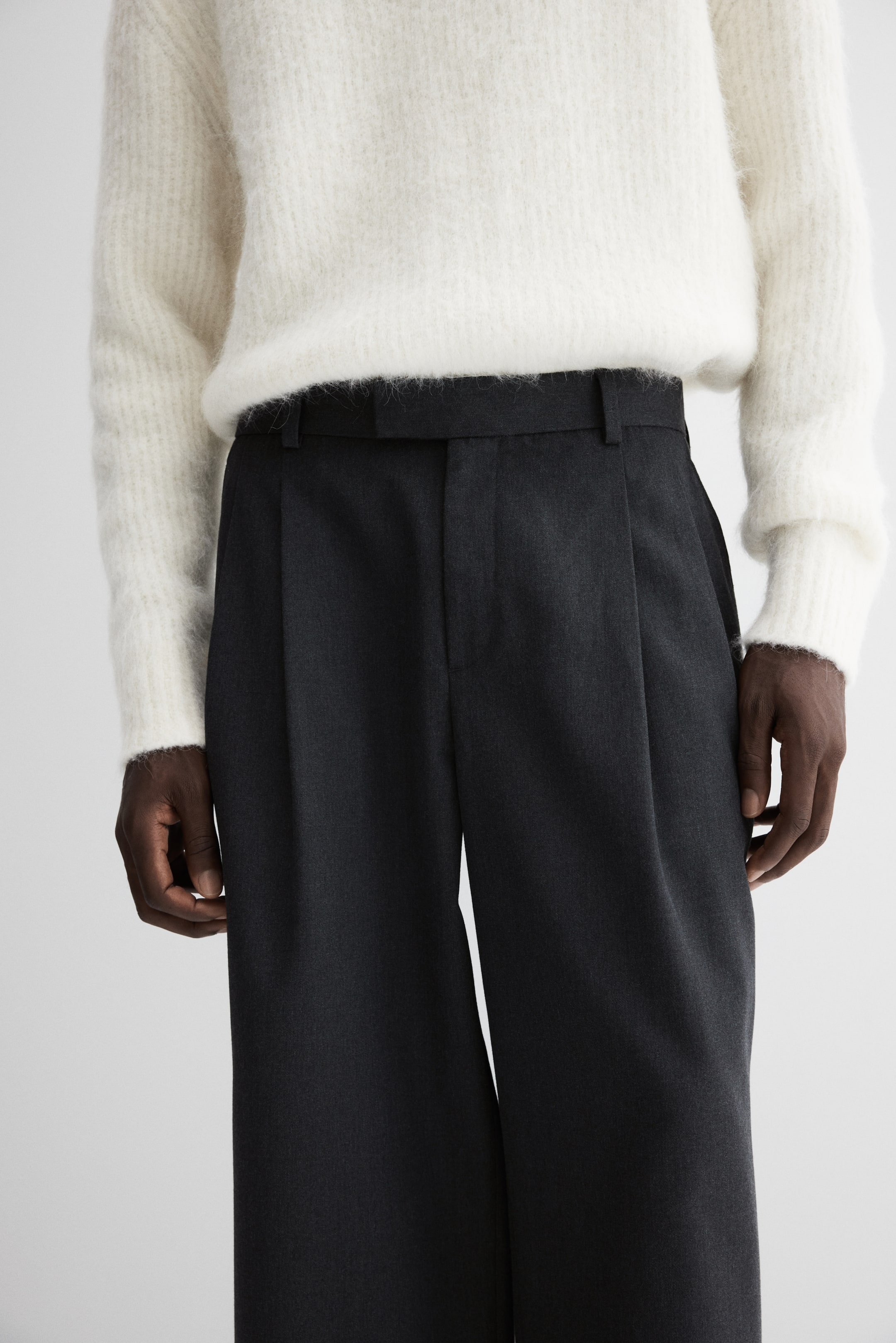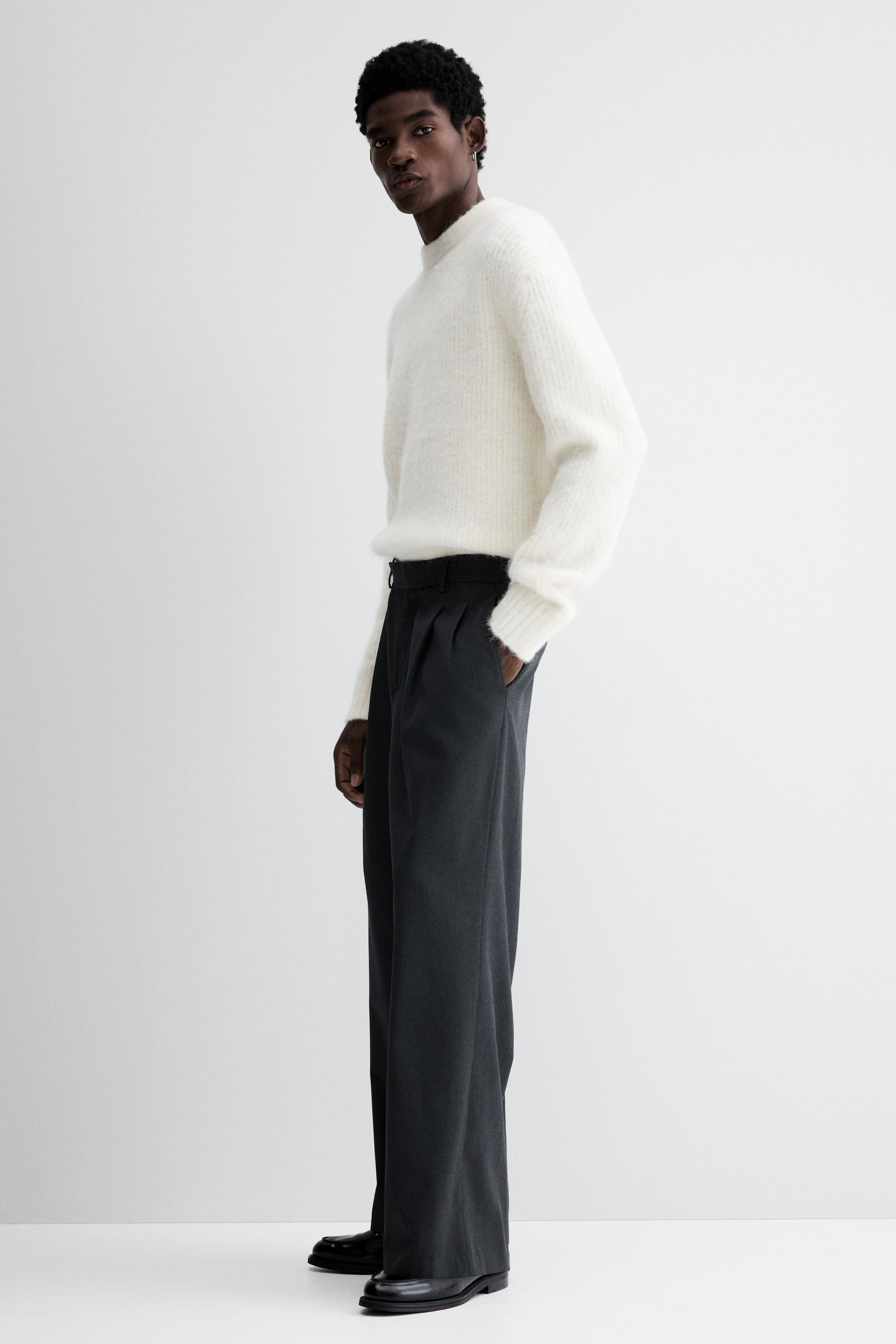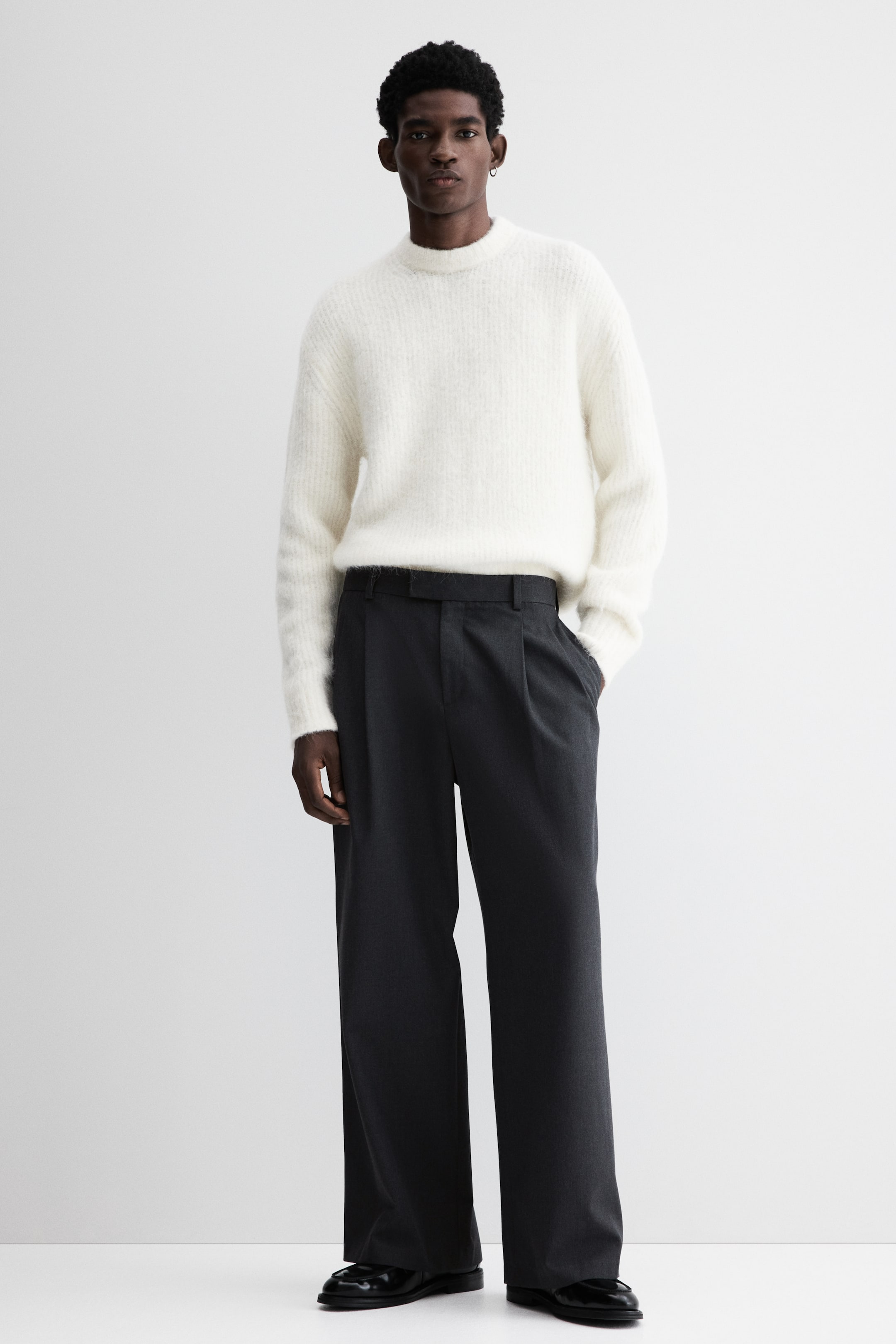Pantaloni in morbido tessuto. Patta con cerniera, girovita allungato con chiusura con bottone e gancetto a barretta nascosti. Tasche laterali e tasche posteriori a filetto con bottone. Rifiniti con pinces in alto. Linea ampia per una vestibilità comoda ma non oversize.