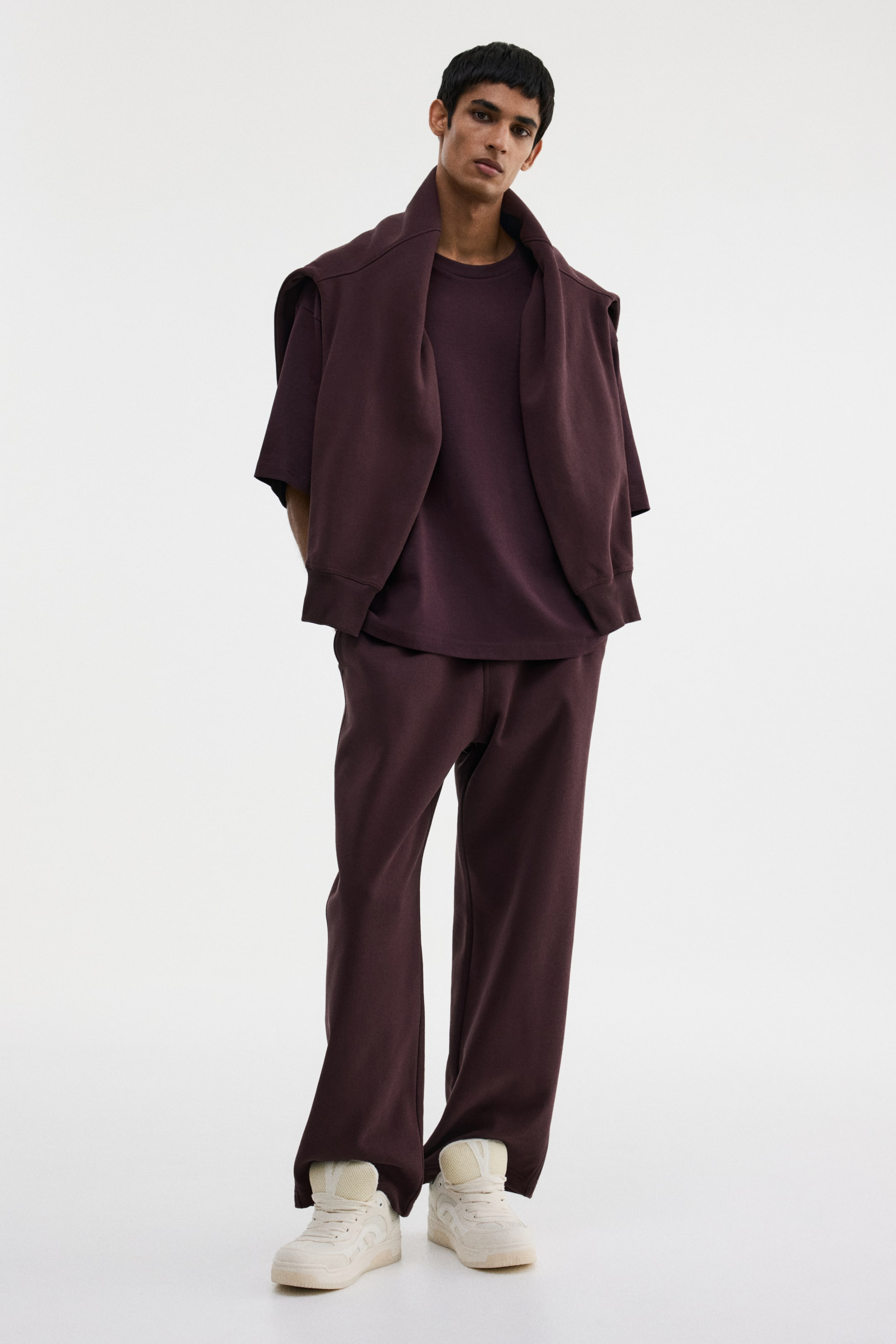 Pantaloni sportivi in pesante tessuto felpato di misto cotone con morbido interno spazzolato. Elastico rivestito e coulisse in vita, tasche laterali. Linea ampia per una vestibilità comoda ma non oversize.