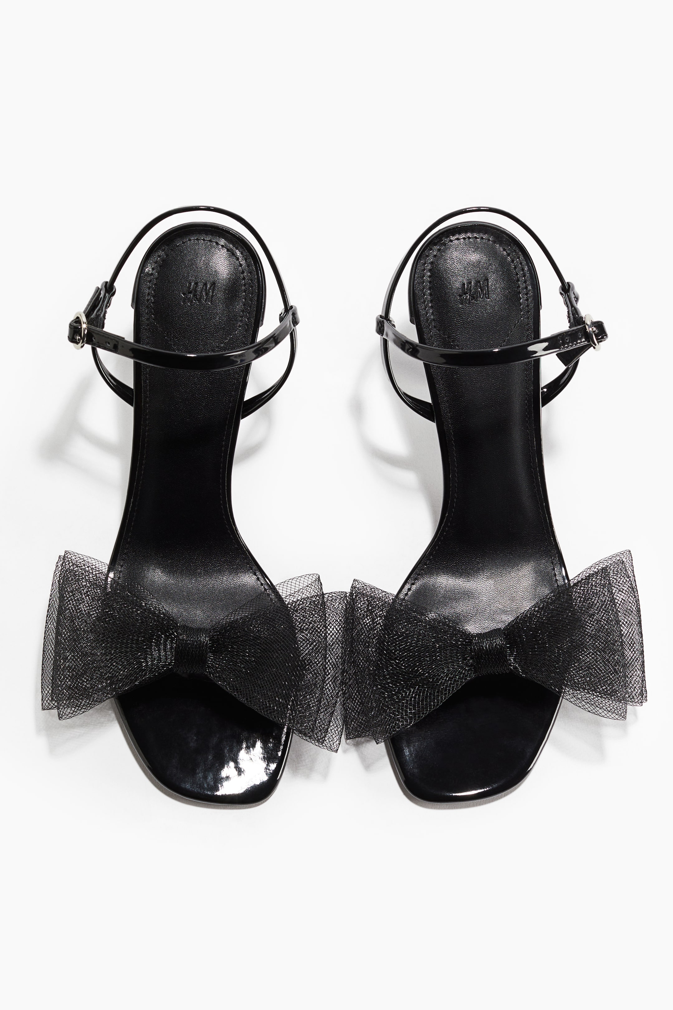 Sandali con tacco alto, con cinturino sottilissimo sul piede e fascetta regolabile alla caviglia con fibbia in metallo. Tacchi sottili e rivestiti.