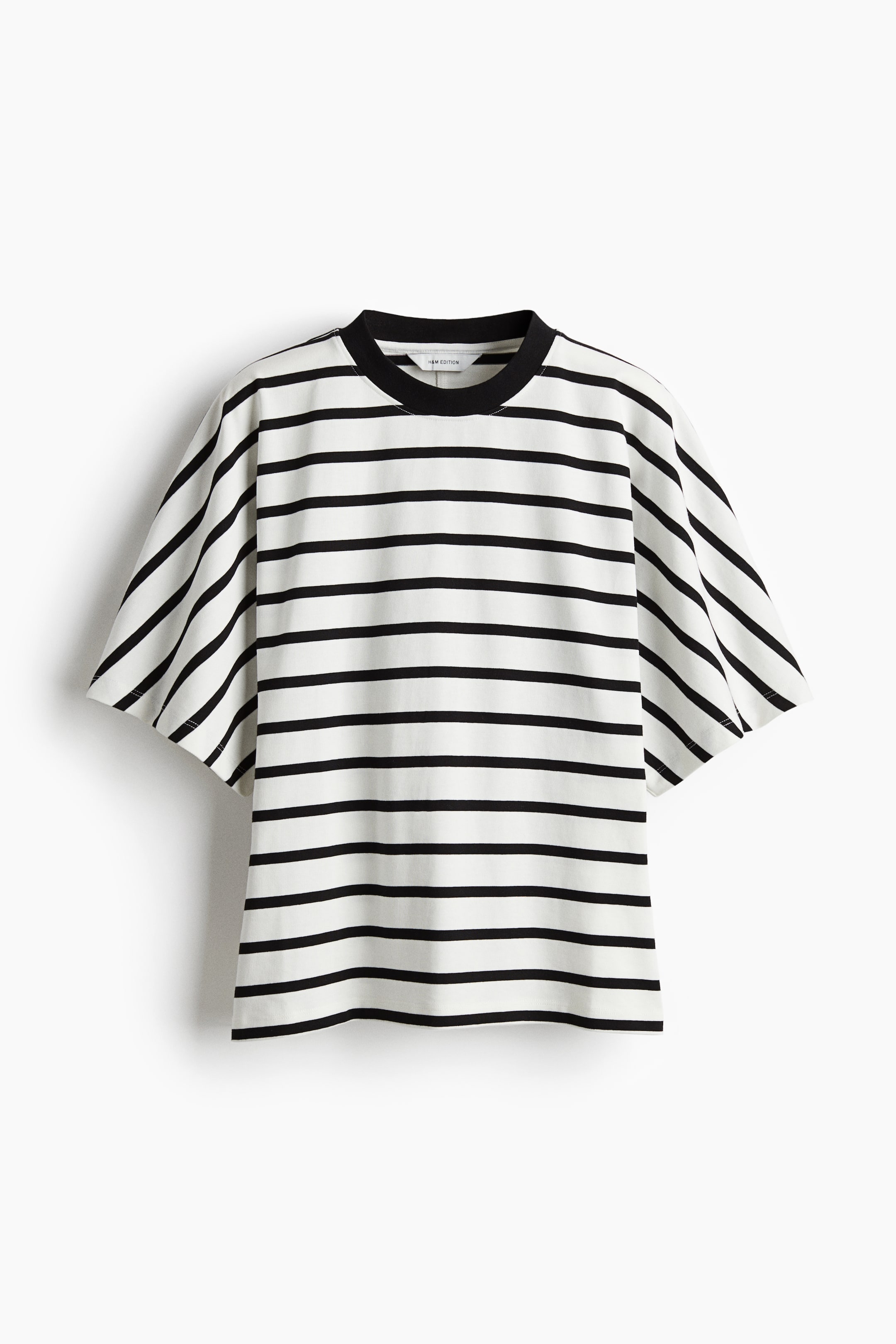T-shirt in jersey di cotone. Modello a girocollo con bordo a costine, maniche ampie al gomito e vita sciancrata per una silhouette attillata che valorizza il fisico.