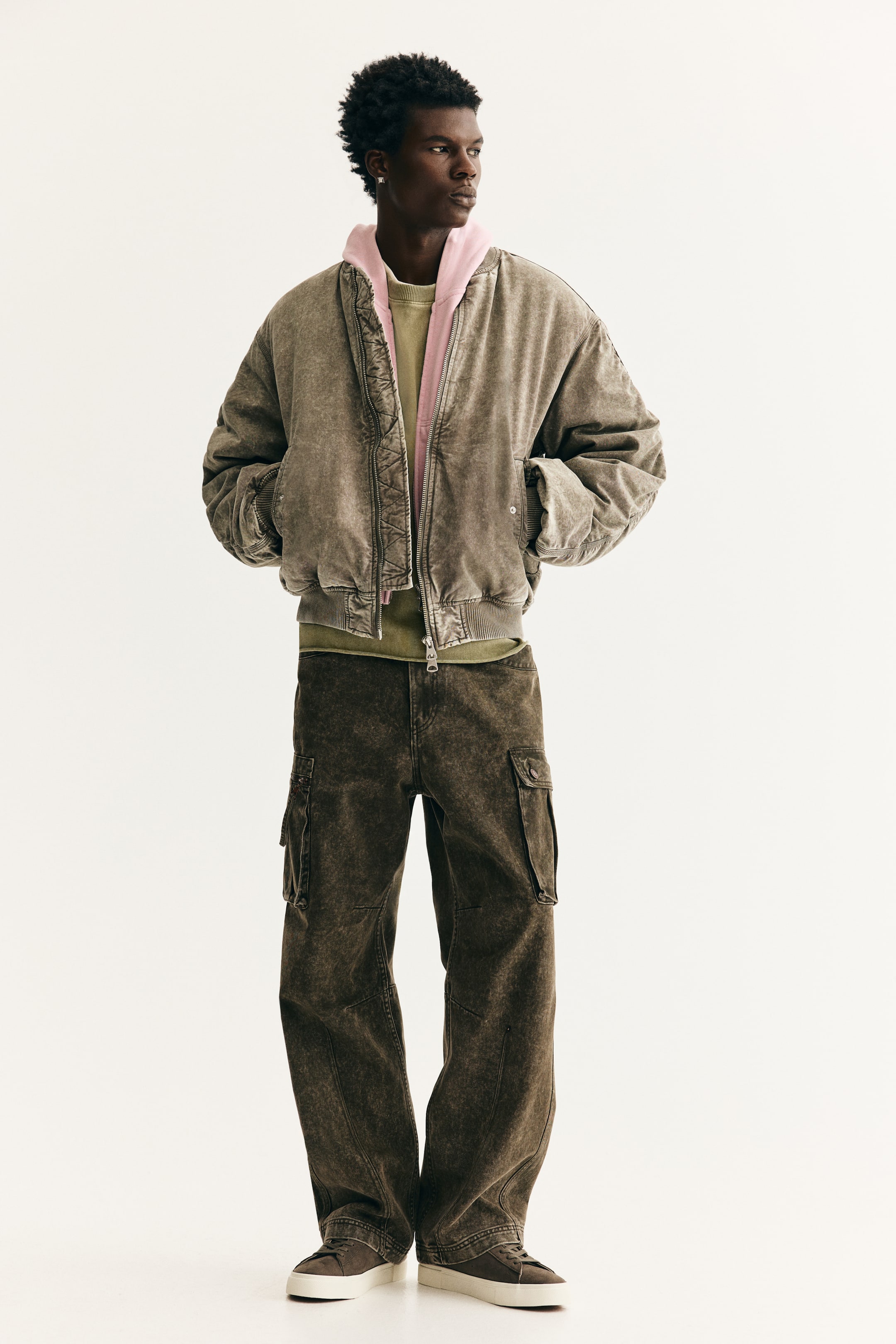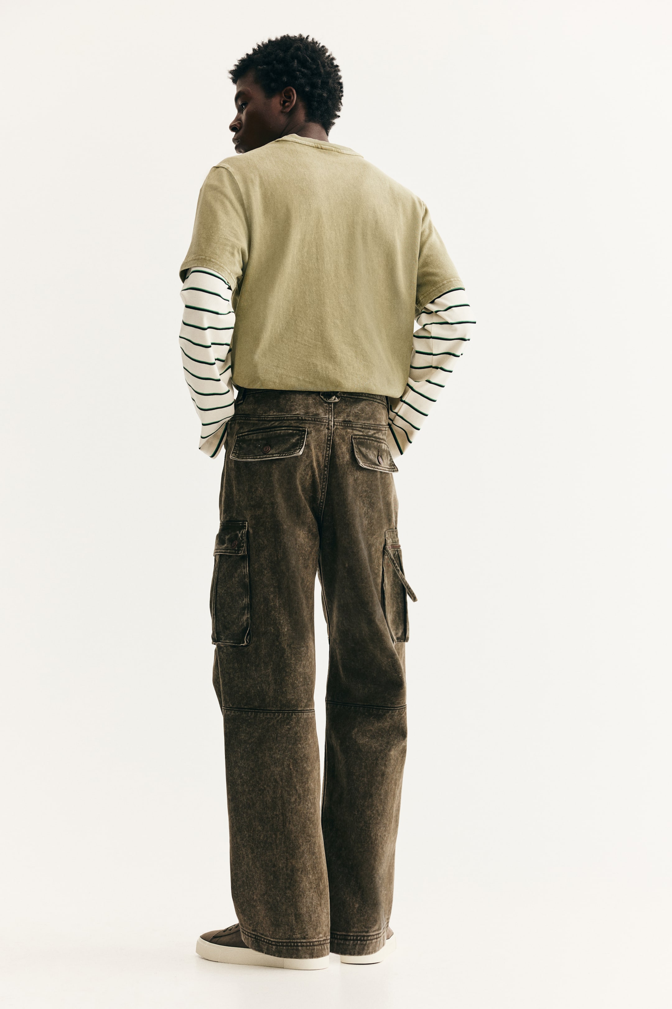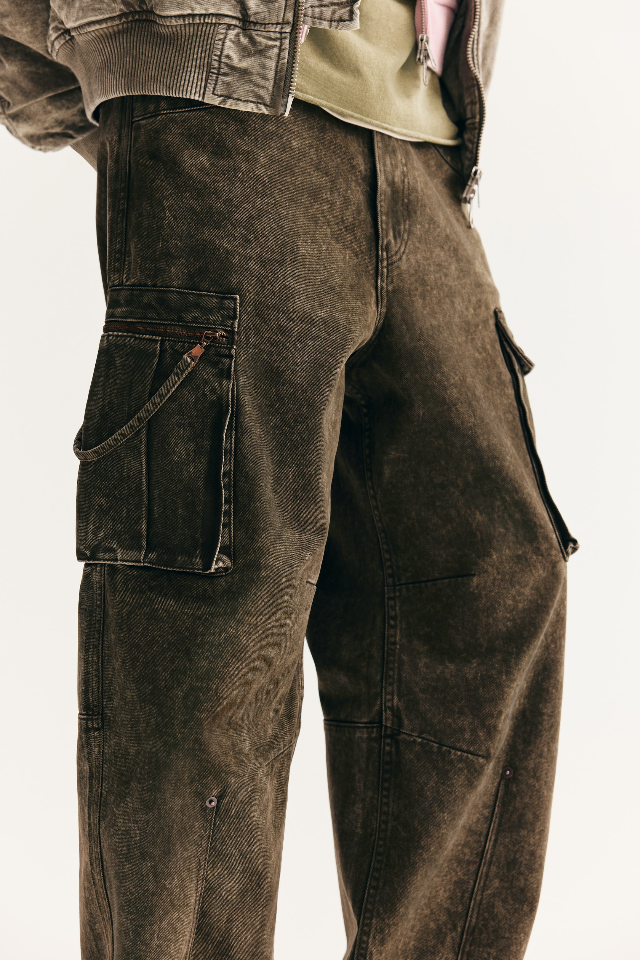 Jeans cargo in consistente denim di cotone. Gamba arrotondata e linea ampia dalla seduta al bordo inferiore. Cavallo basso, ampio spazio su tutta la lunghezza della gamba. Vita normale, patta con cerniera e bottone. Tasche laterali, tasche posteriori con pattina. Due tasche sulle gambe, di cui una con cerniera e tiretto, l'altra con pattina e bottoni. Tutto ciò di cui hai bisogno per un look denim autentico.