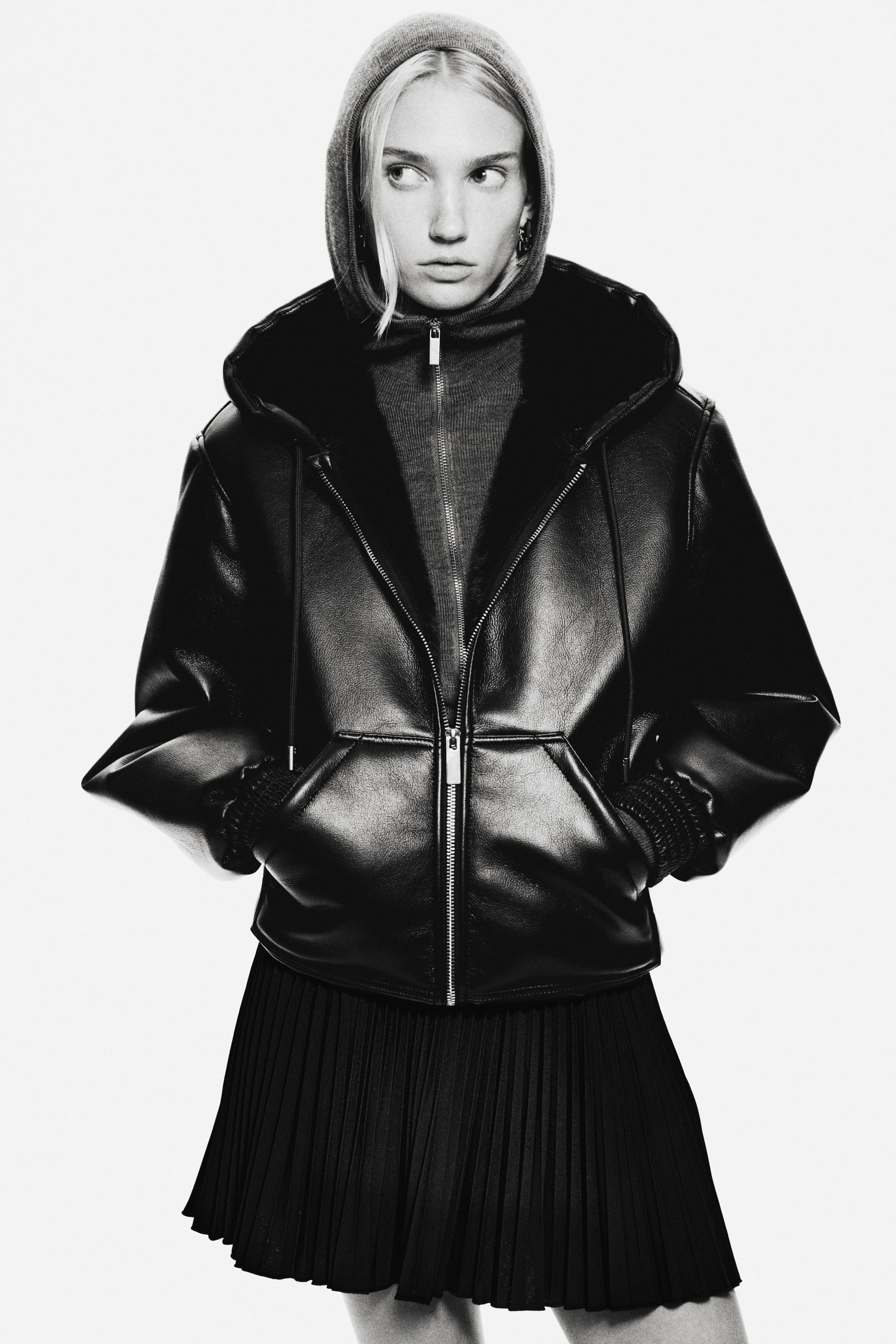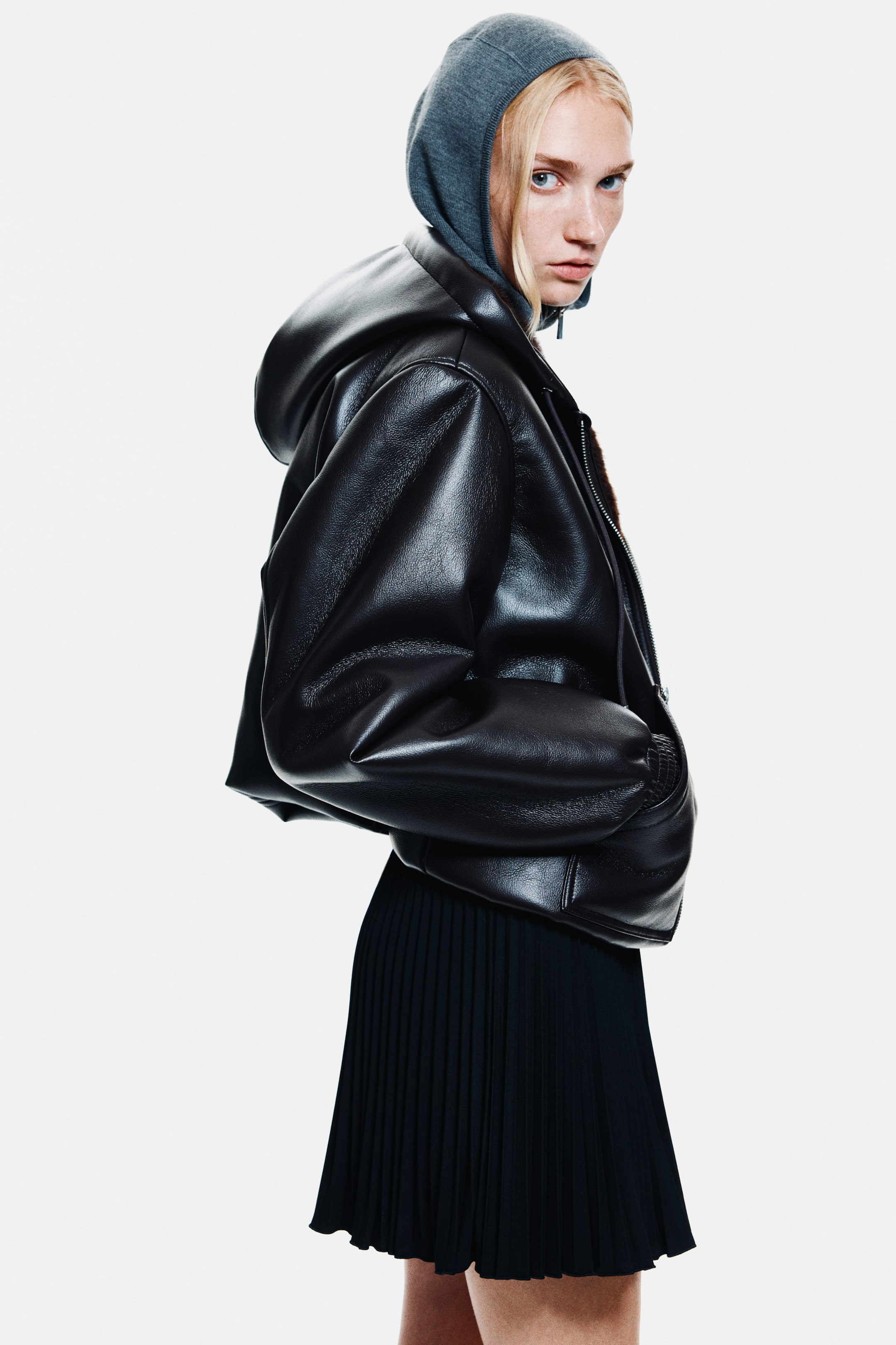 Gonna-shorts corta e svasata in tessuto plissettato. Cerniera nascosta e chiusura a gancetto un lato, in vita. Bordo inferiore a overlock.
