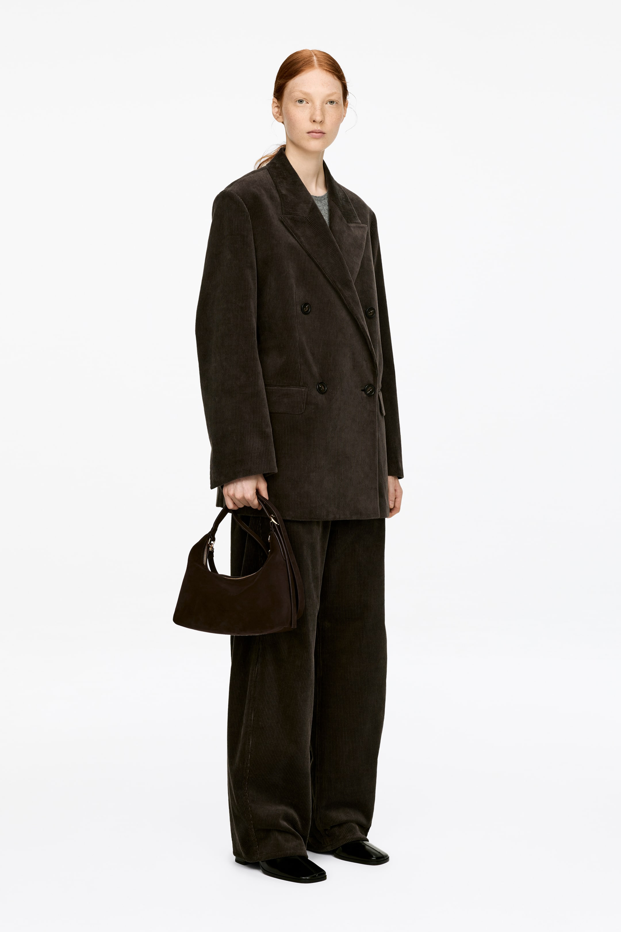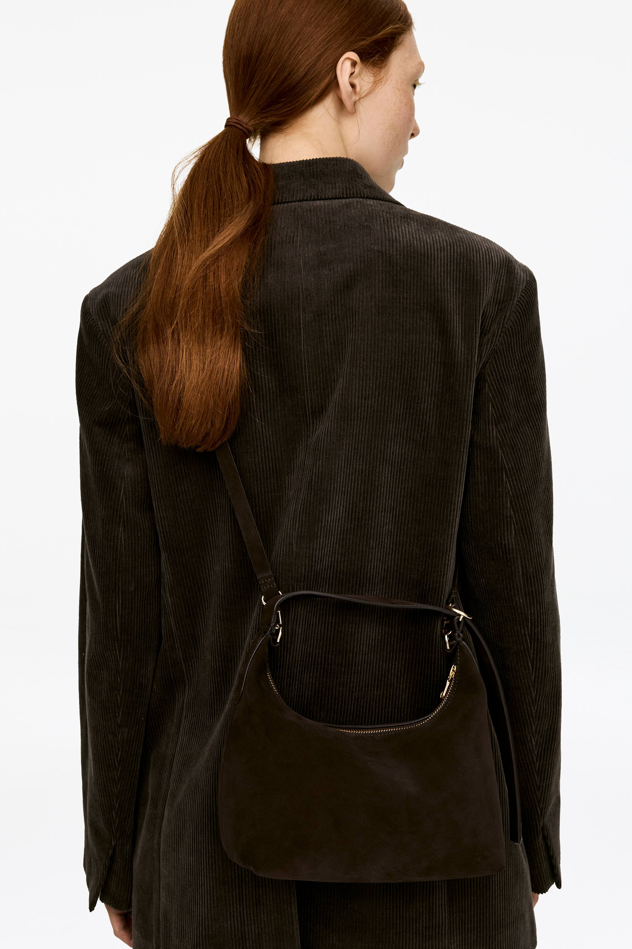 Borsa squadrata realizzata in pelle senza cromo. Manico superiore regolabile con fibbia di colore oro e sottile tracolla removibile. Tasca interna con cerniera e chiusura con cerniera. Larghezza 23 cm, altezza 16 cm (dal fondo a metà cerniera) e 19 cm (sui lati), profondità 10,5 cm.