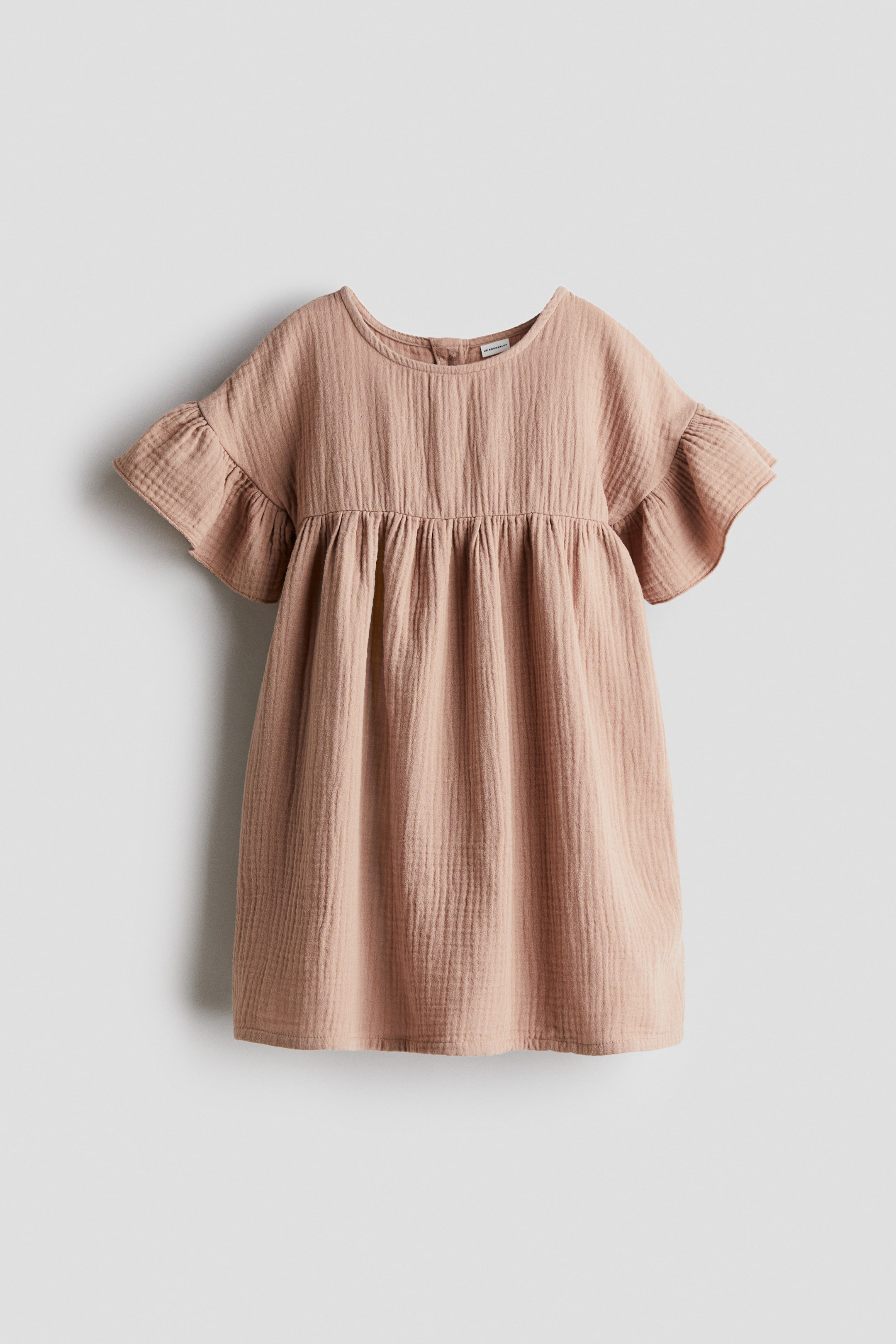 H&M Adorables. Abito in mussola morbida e leggera di cotone di alta qualità per un effetto morbido e piacevole al contatto con la pelle. Spalle basse, maniche corte a volant e cucitura arricciata sotto il seno. Gonna svasata. Bottoni sulla schiena in noce Corozo, un materiale anallergico e resistente.