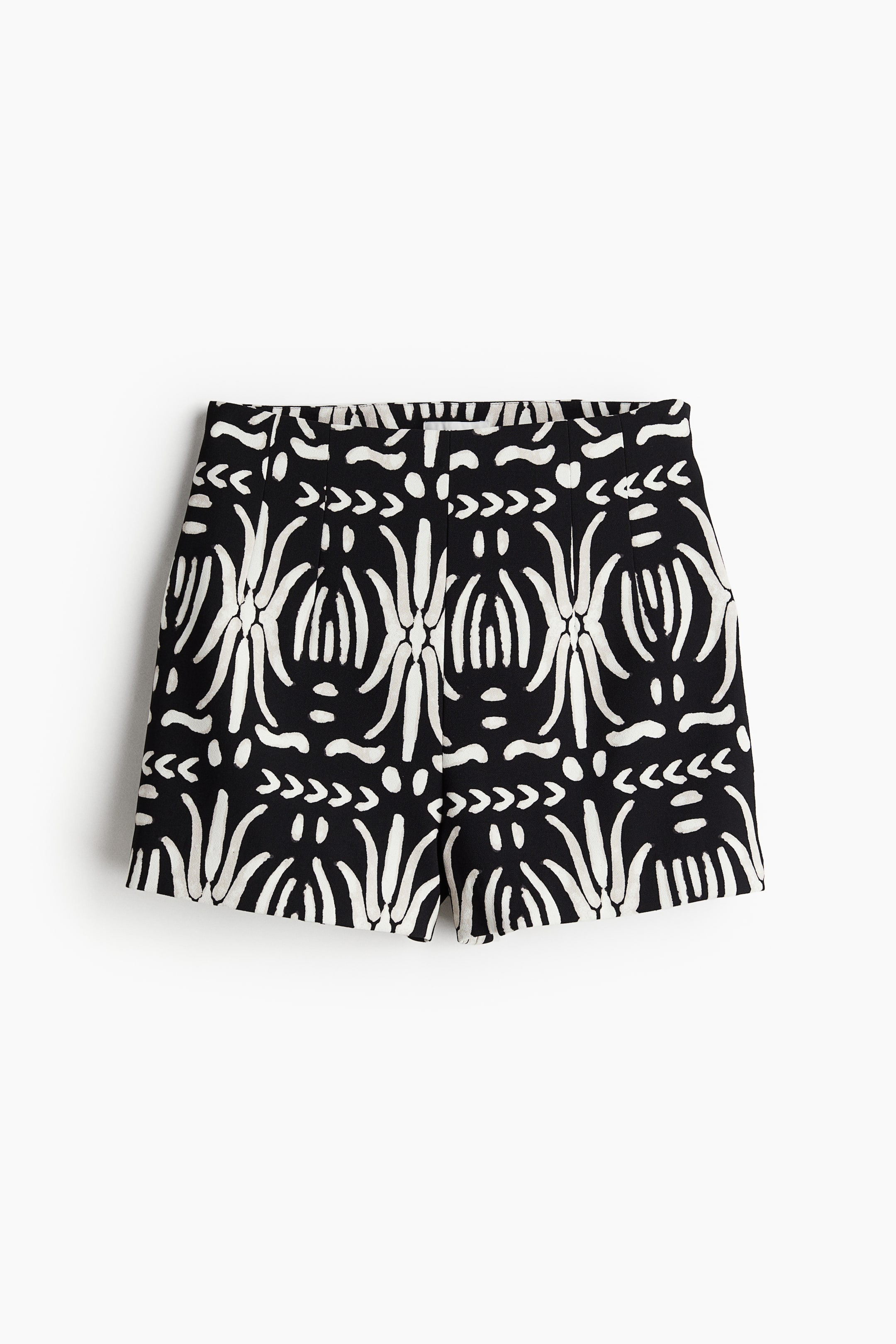 Mini shorts in woven fabric with a high waist and a concealed zip and hook-and-eye fastener at one side.