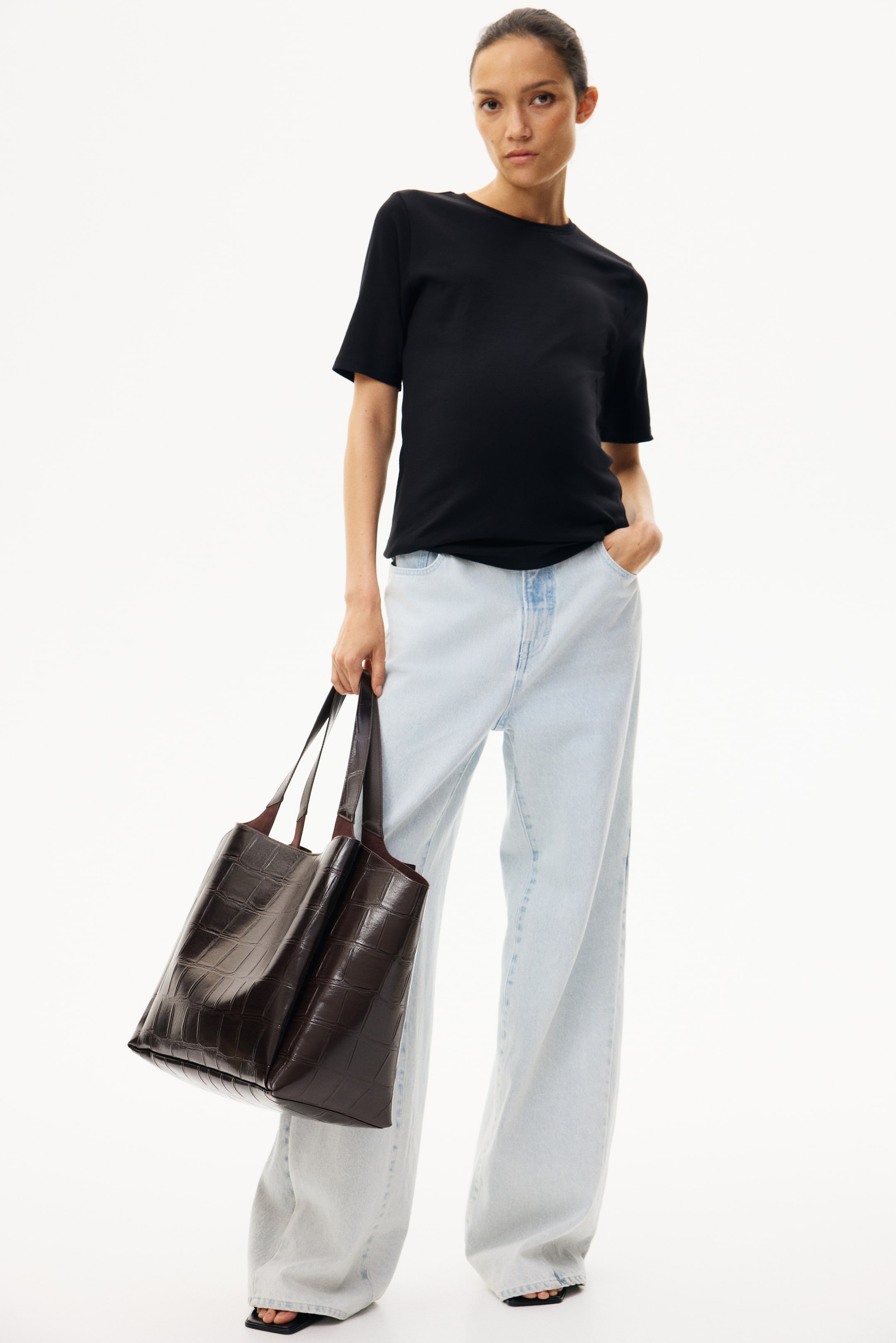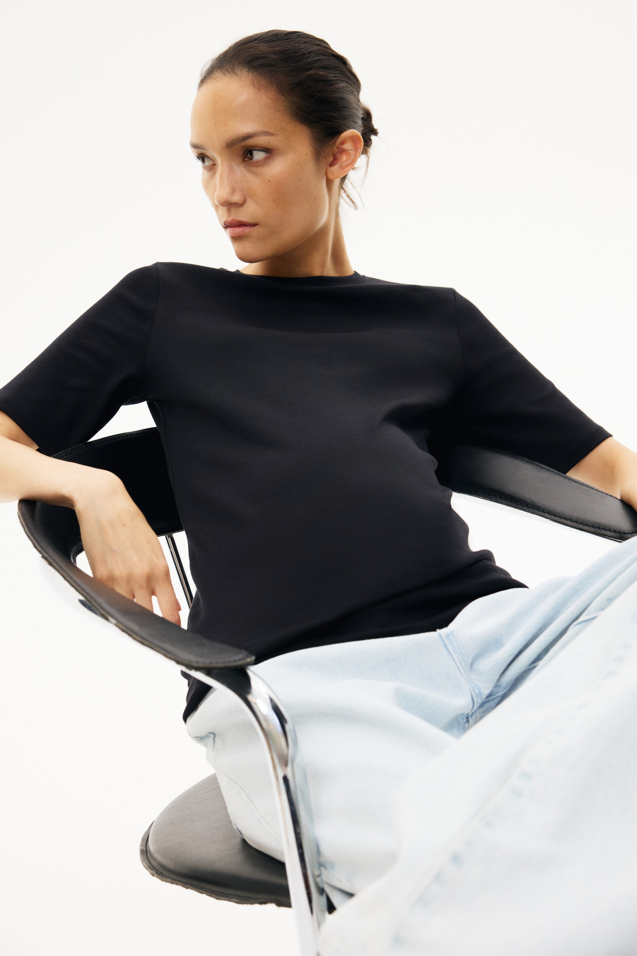 T-shirt in jersey di cotone con bordino sottile lungo lo scollo. Maniche sopra il gomito.