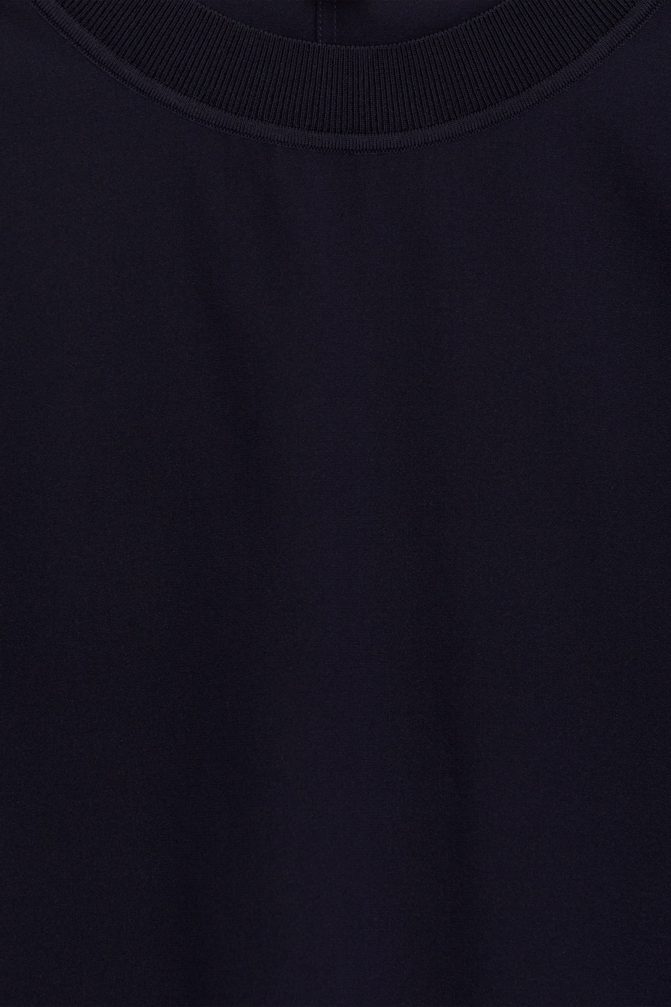 T-shirt per il tempo libero realizzata in crêpe di seta elasticizzata di prima qualità. Finitura a coste sul collo.