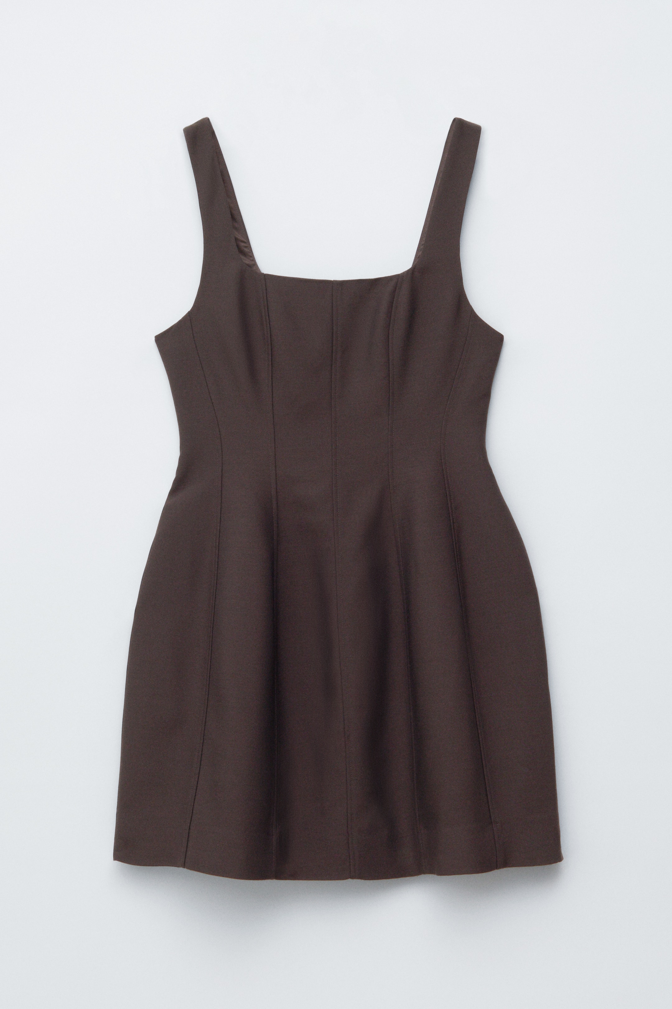 Questo mini abito è caratterizzato da scollo quadrato, vita aderente in stile corsetto e gonna voluminosa. Il capo è impunturato con cuciture verticali. • Vestibilità regolare • Zip nascosta sul retro Lunghezza dell'abito: 63,5 cm (EU 38/UK 10/US 6)