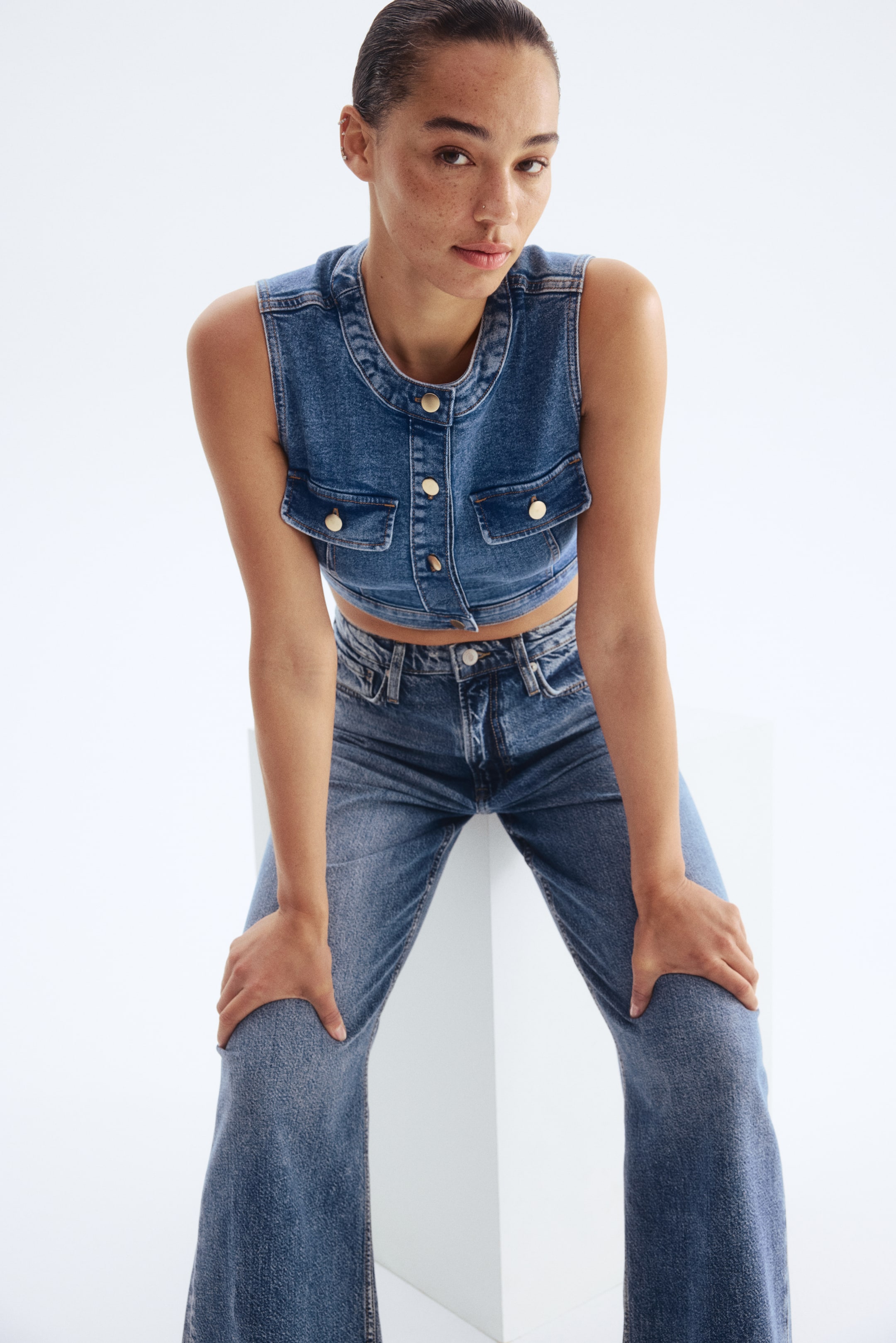 Jeans a 5 tasche in denim morbidissimo e leggerissimo, modello Curvy Fit creato per lasciare meno gioco in vita offrendo una linea più morbida su fianchi e cosce. Gamba ampia con linea dritta e ampia dalle cosce al fondo. Vita altissima, patta con cerniera e bottone. Leggermente più lunghi, con il tessuto che ricade morbidamente sul piede. Sempre perfetti con qualunque abbinamento.