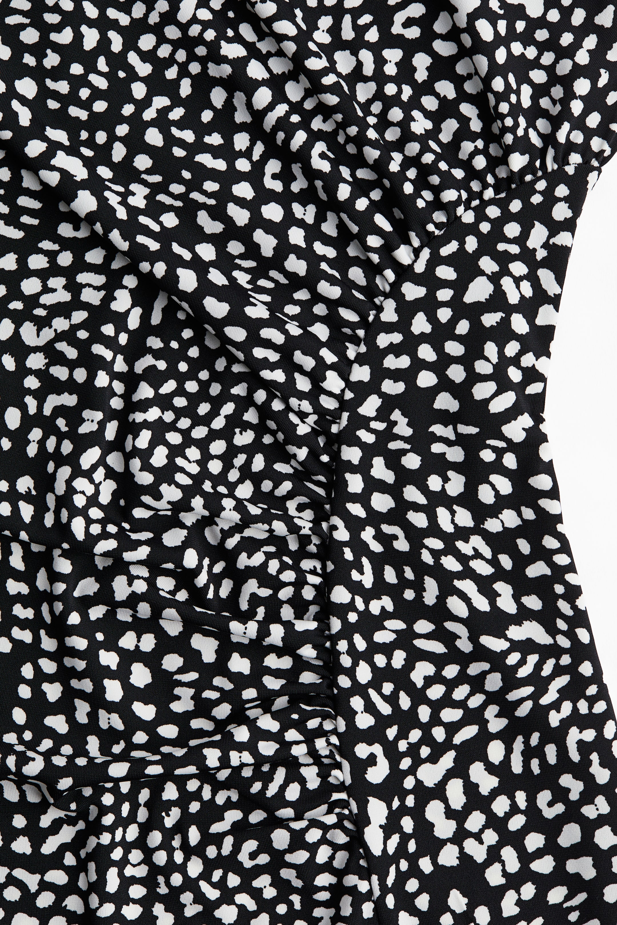 Abito aderente e lungo al polpaccio in jersey elasticizzato con collo a lupetto. Modello senza maniche con cucitura arrotondata e arricciata su un lato, per una silhouette elegante e drappeggiata. Bordo dritto in basso.