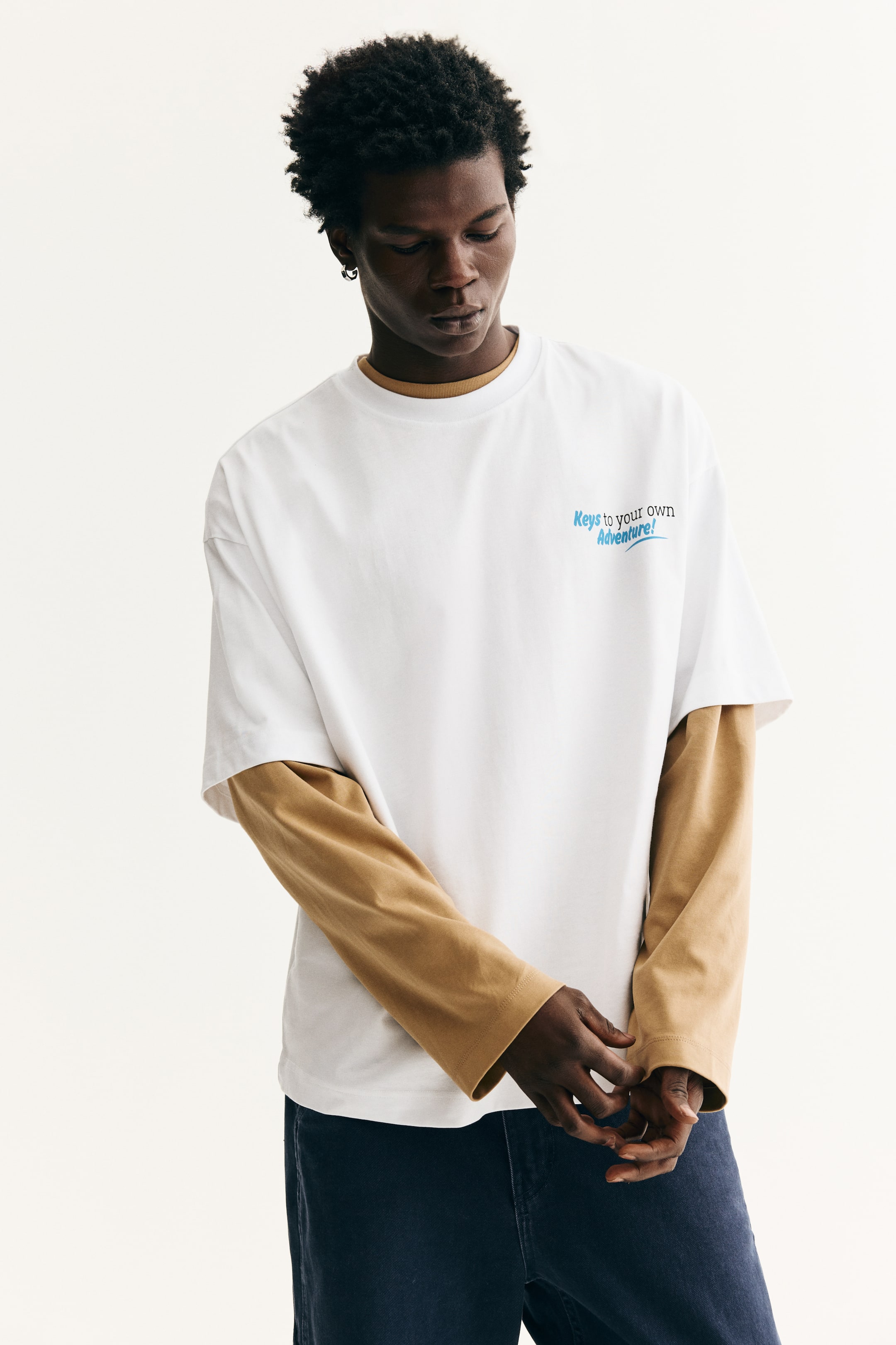 T-shirt dalla linea squadrata in pesante jersey di cotone con stampa. Bordo a costine sullo scollo, spalle basse e taglio dritto in basso. Linea oversize per una vestibilità abbondante ed extra ampia.