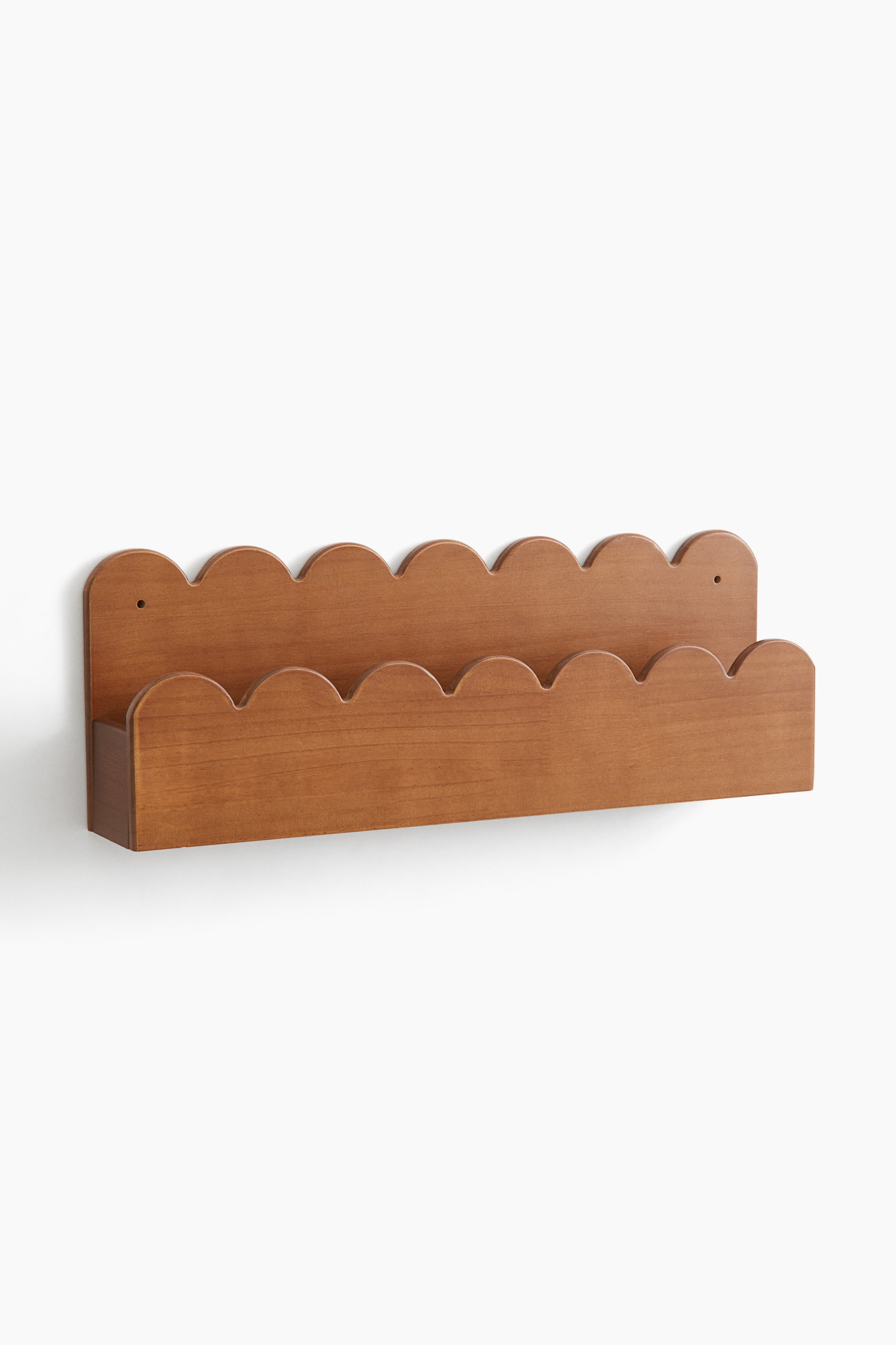 Mensola da parete in legno di pino laccato e MDF. Bordi smerlati per un aspetto allegro. Chiodi/viti per appenderla non inclusi. Profondità 9,5 cm. Altezza 20 cm. Larghezza 64 cm.