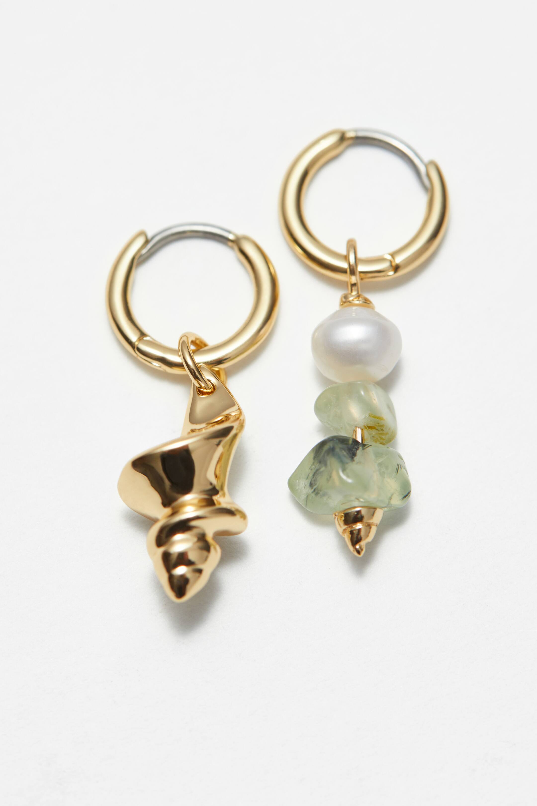 Realizzato in ottone lucido, questo set spaiato di orecchini a bottone è costituito da un pezzo disegnato a forma di stella dalle linee arrotondate e da un classico modello a bottone con catenina in stile ancora fissata sul retro per un look raffinato. Entrambi gli orecchini sono impreziositi da una perla d'acqua dolce dalla forma irregolare. L'asimmetria del set lo rende perfetto da abbinare ad altri orecchini. Nickel tested Chiusura a farfalla