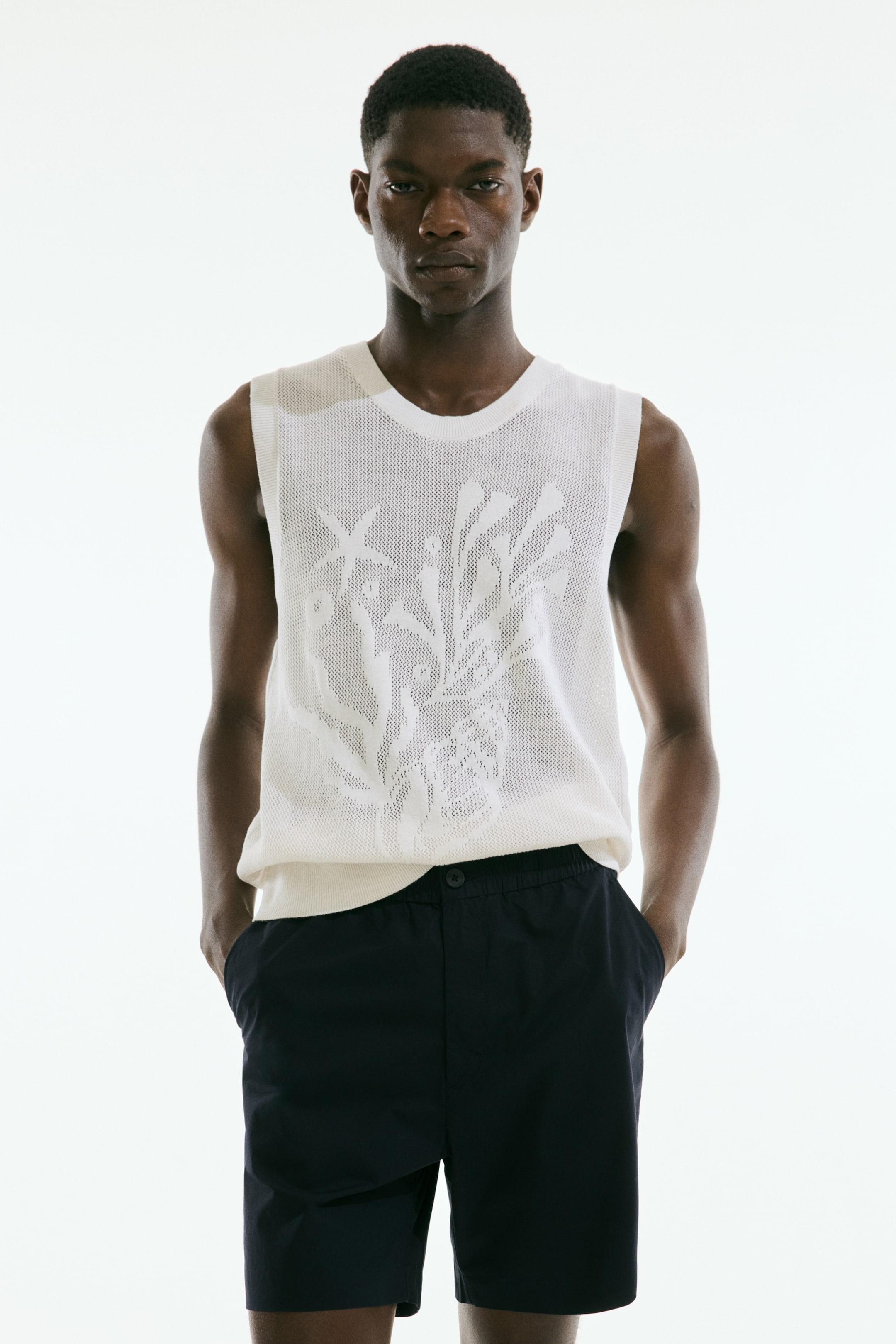 Shorts in popeline di cotone. Elastico in vita, patta con cerniera e bottone. Tasche laterali oblique e tasche posteriori a filetto con bottone. Linea rilassata per una vestibilità comoda ma non oversize.