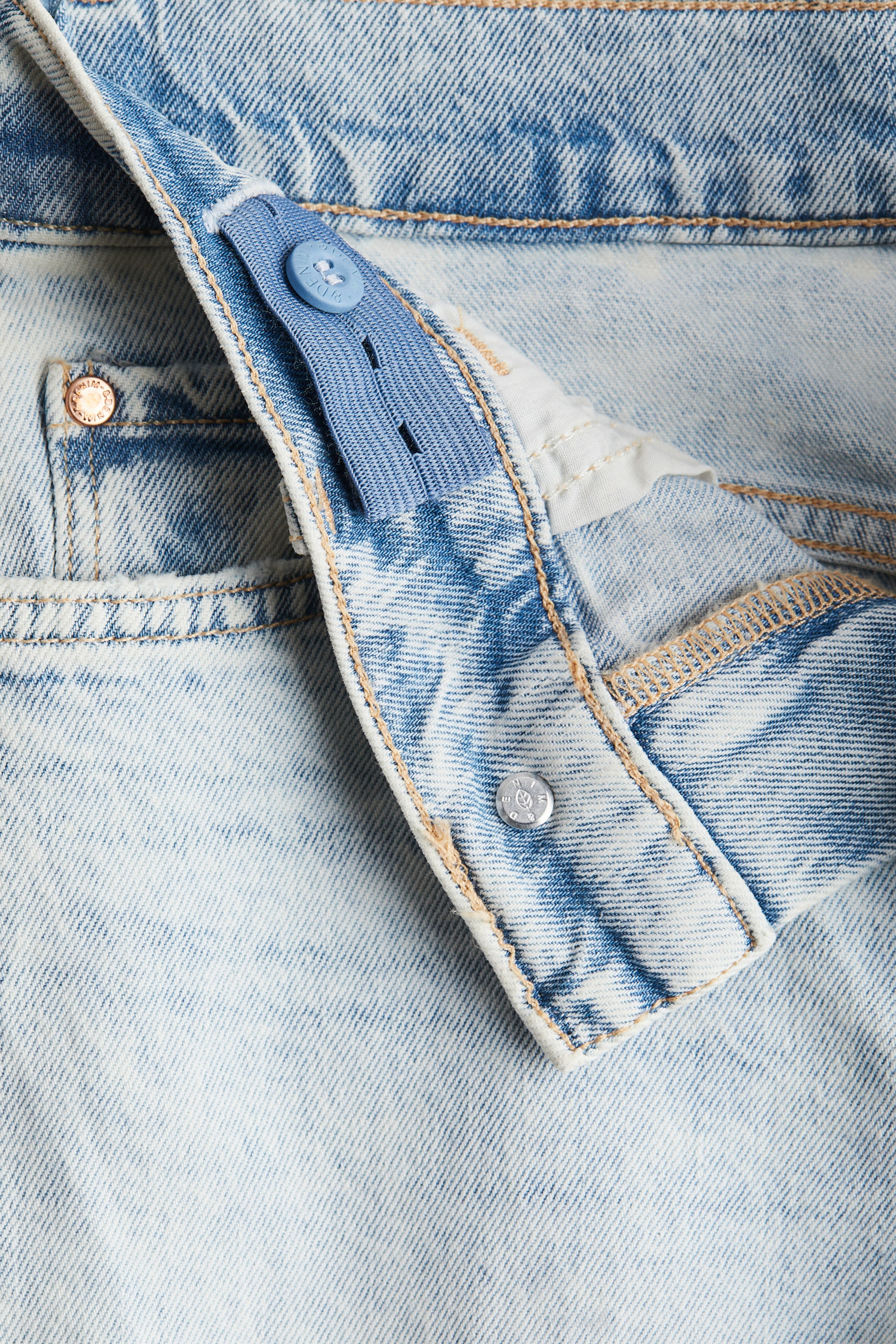 Shorts a 5 tasche in morbido denim di cotone. Vestibilità ampia con vita elasticizzata e regolabile. Patta con cerniera e bottone.