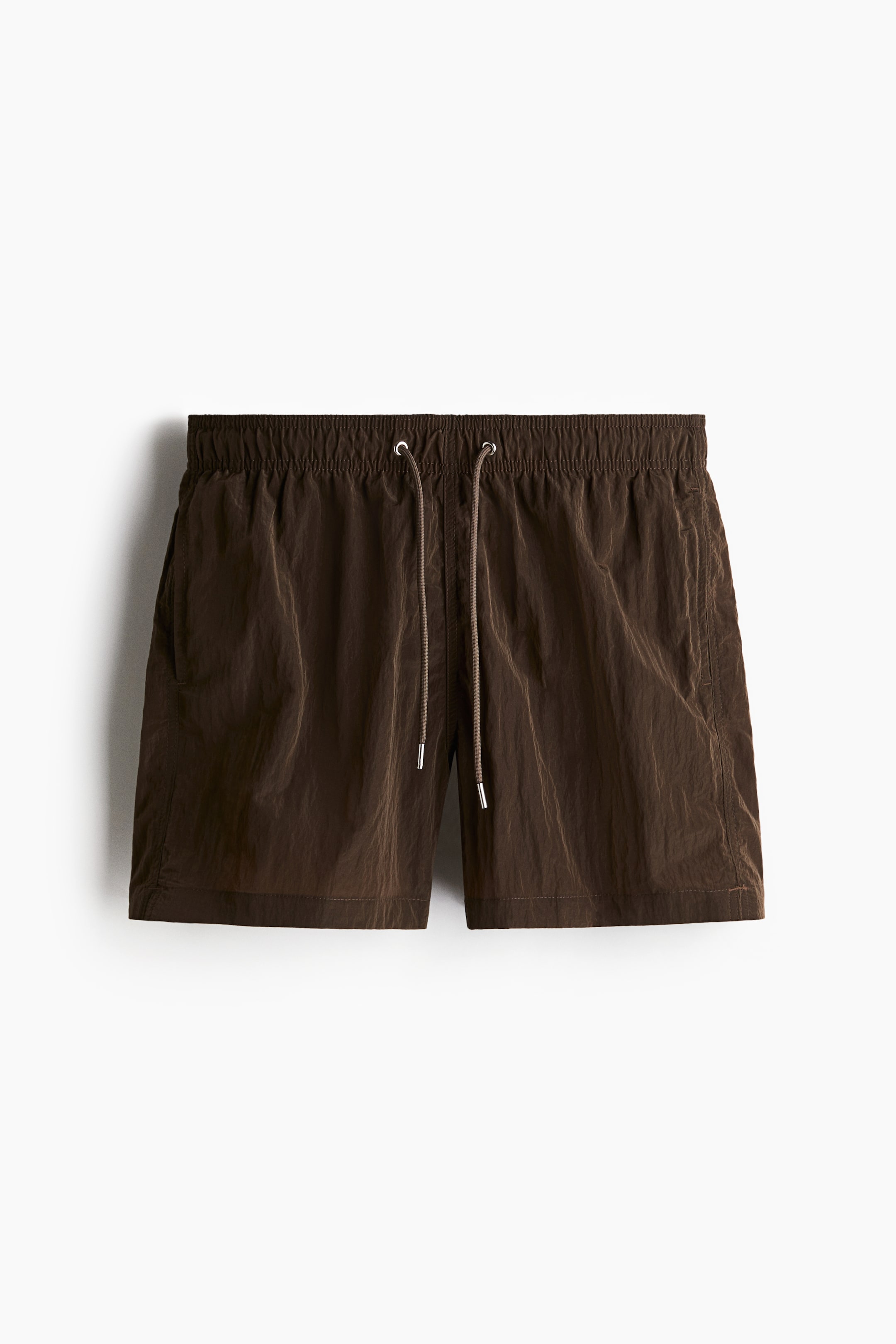 Shorts da bagno in tessuto goffrato. Elastico rivestito e coulisse in vita. Tasche laterali, una tasca a filetto dietro con chiusura a strappo. Modello a bermuda sopra il ginocchio. Pantaloncino interno in morbido tessuto a rete.