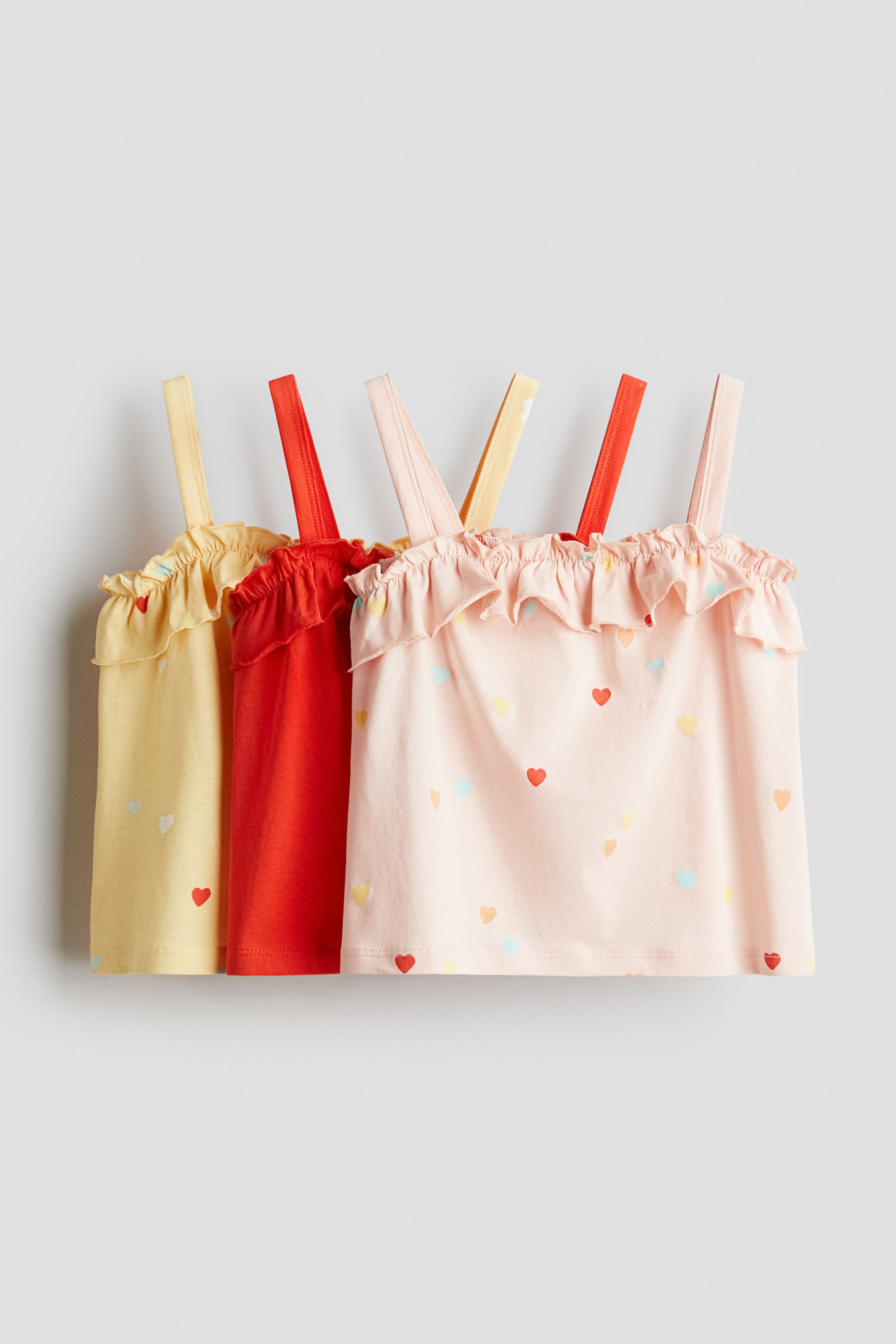 Canotte con spalline sottili in morbido jersey di cotone. Scollo quadrato e bordo a volant in alto.