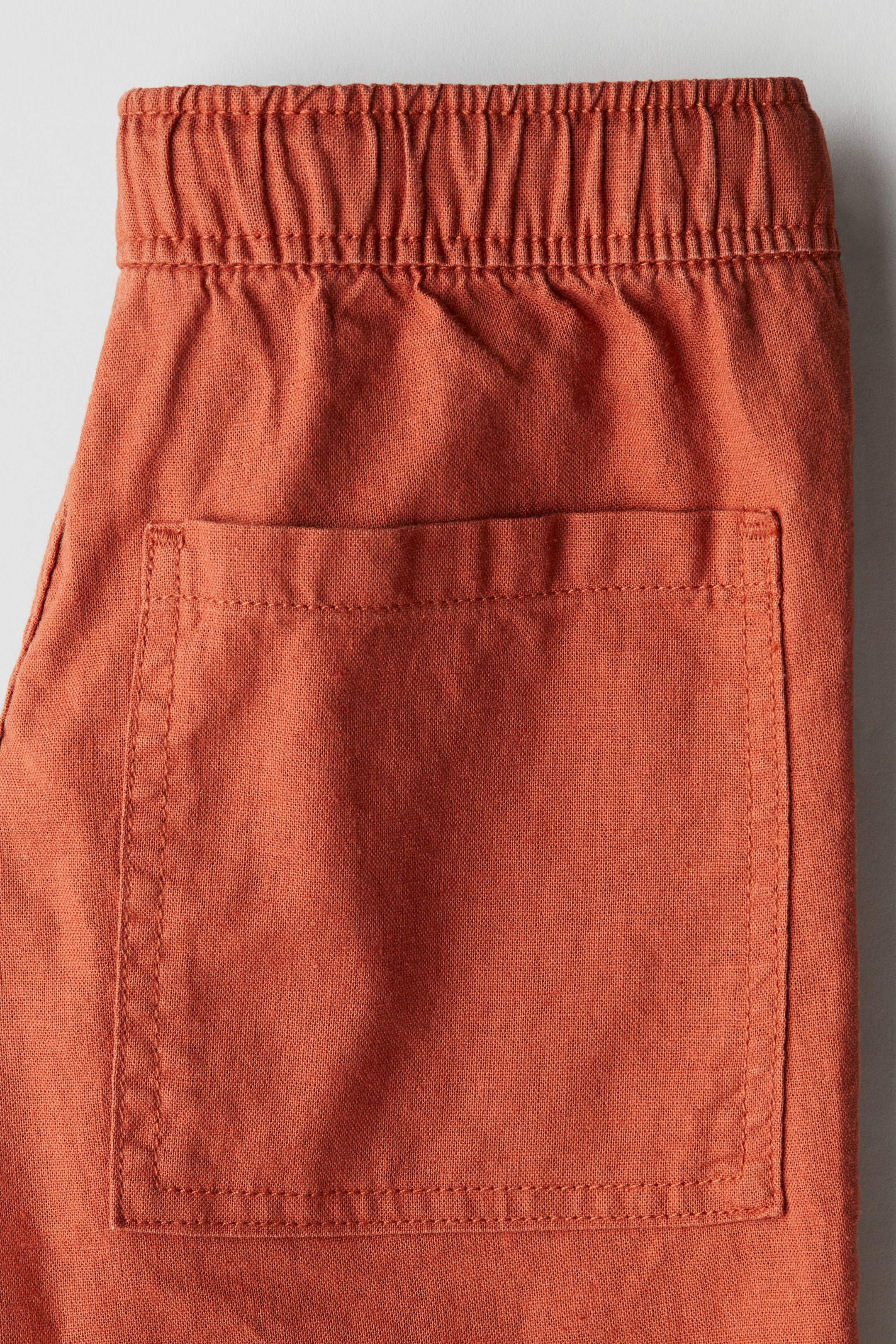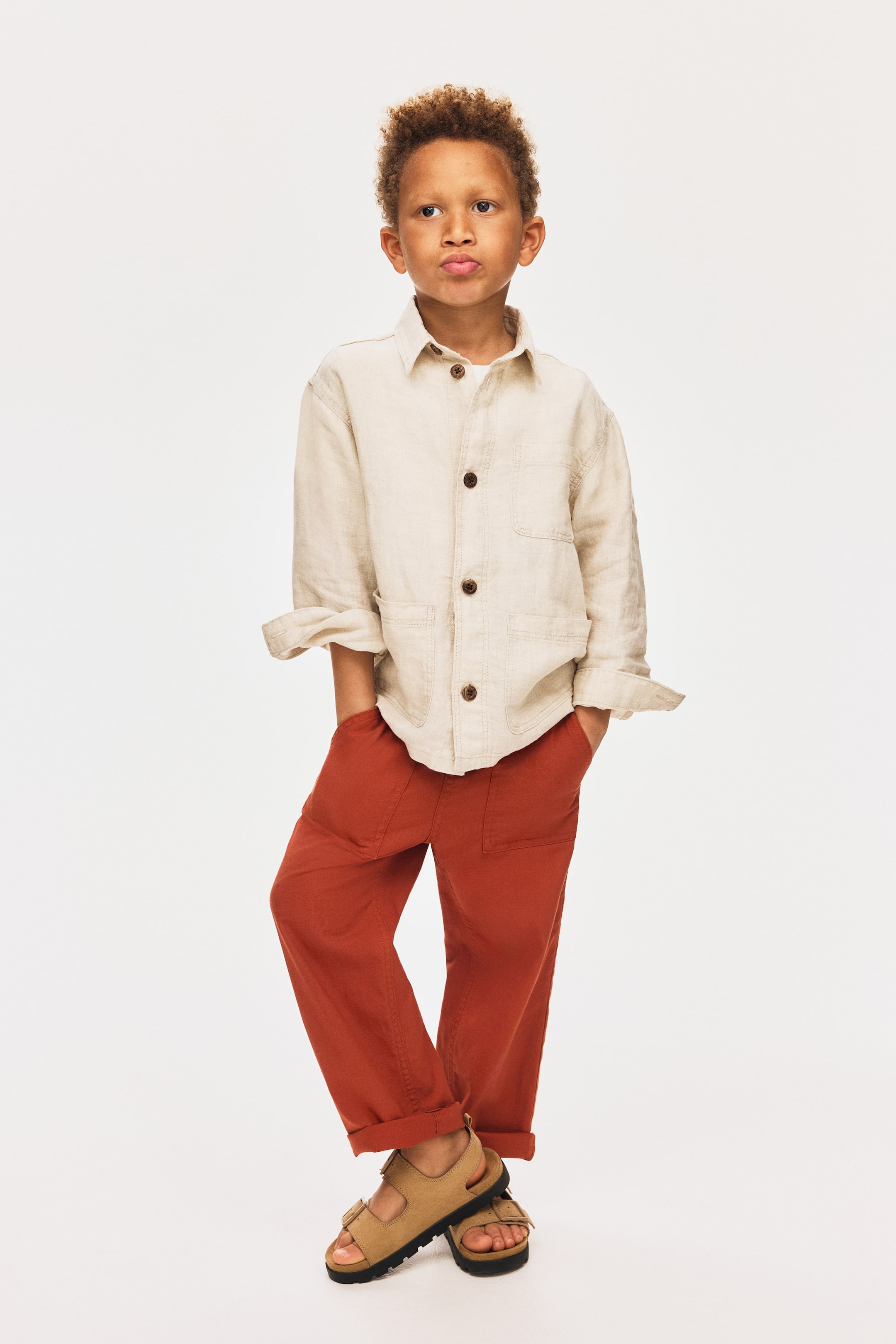 Pantaloni in leggero tessuto di misto lino e cotone. Vestibilità comoda con elastico e coulisse in vita, gamba dritta. Tasche applicate davanti e dietro.