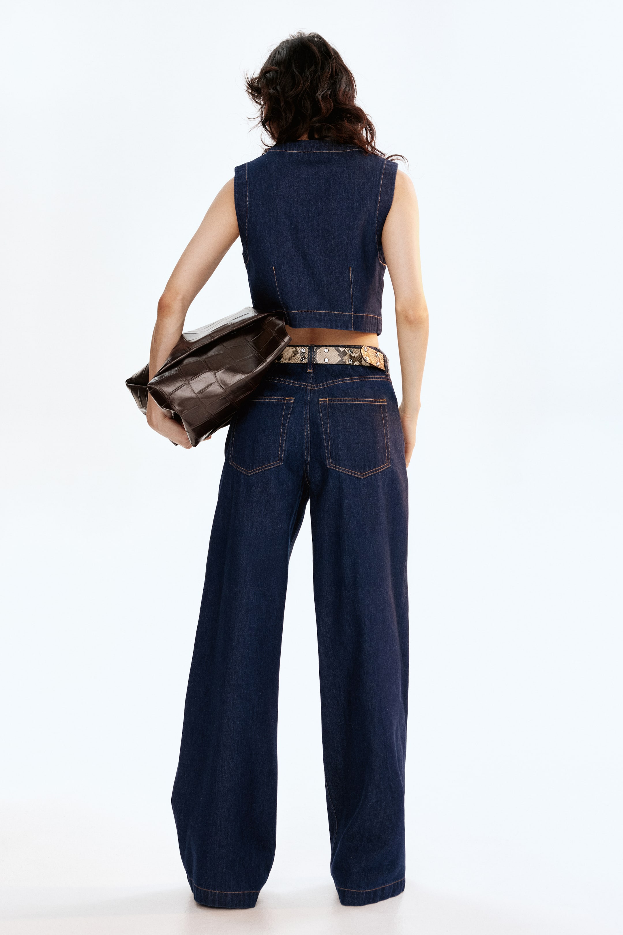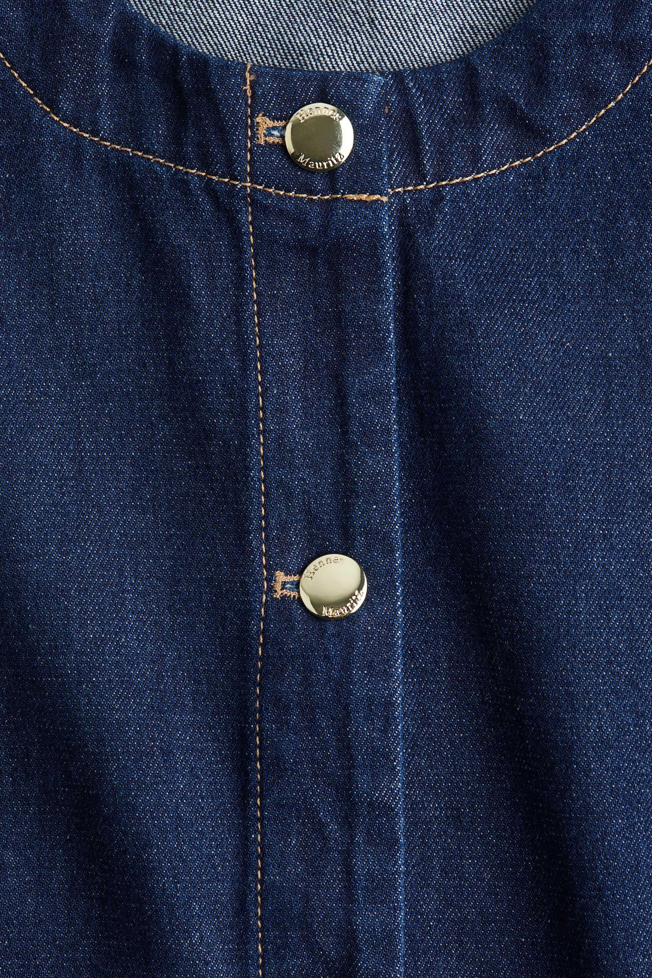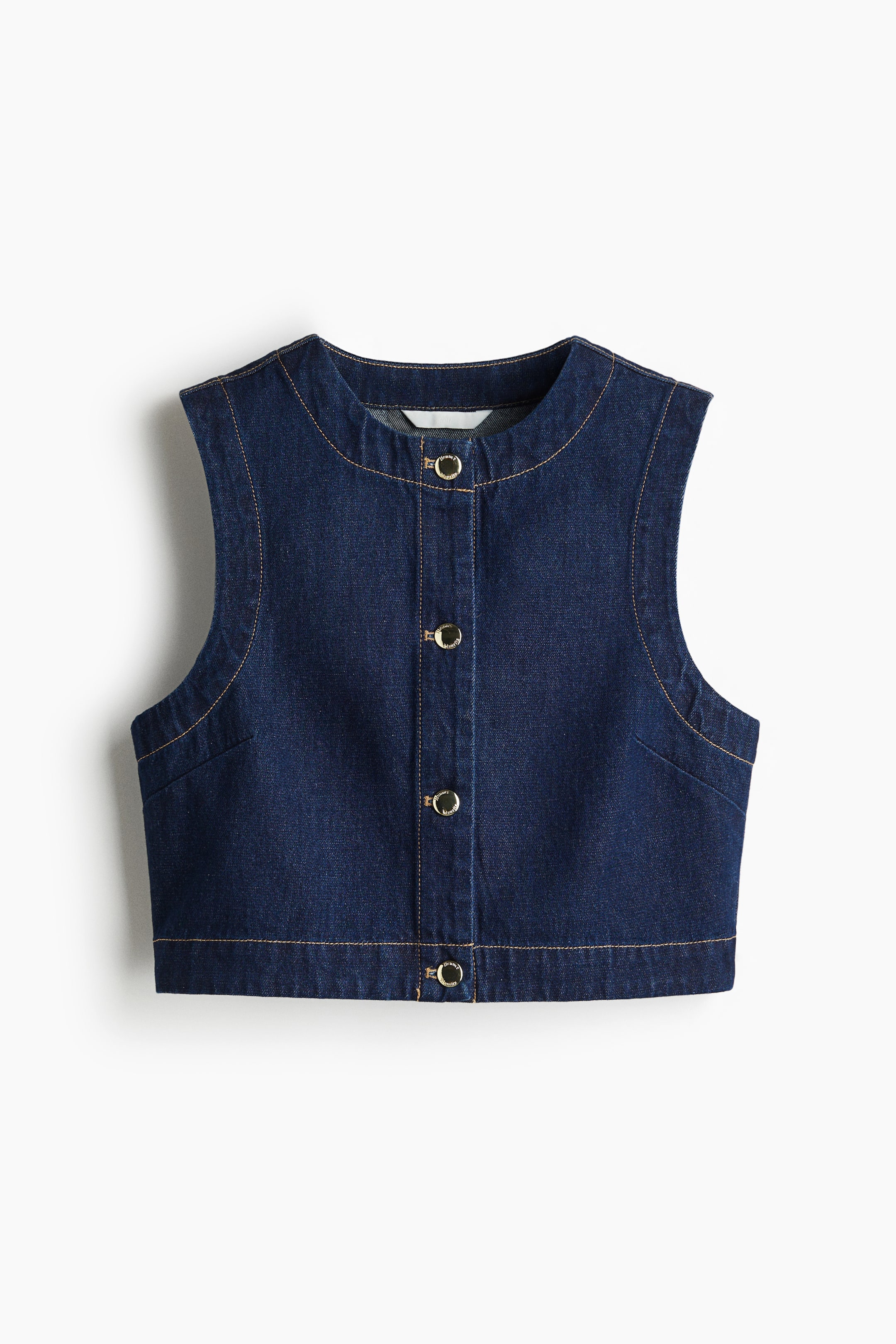 Gilet corto e aderente in denim di cotone con scollo arrotondato e bottoni in metallo davanti.