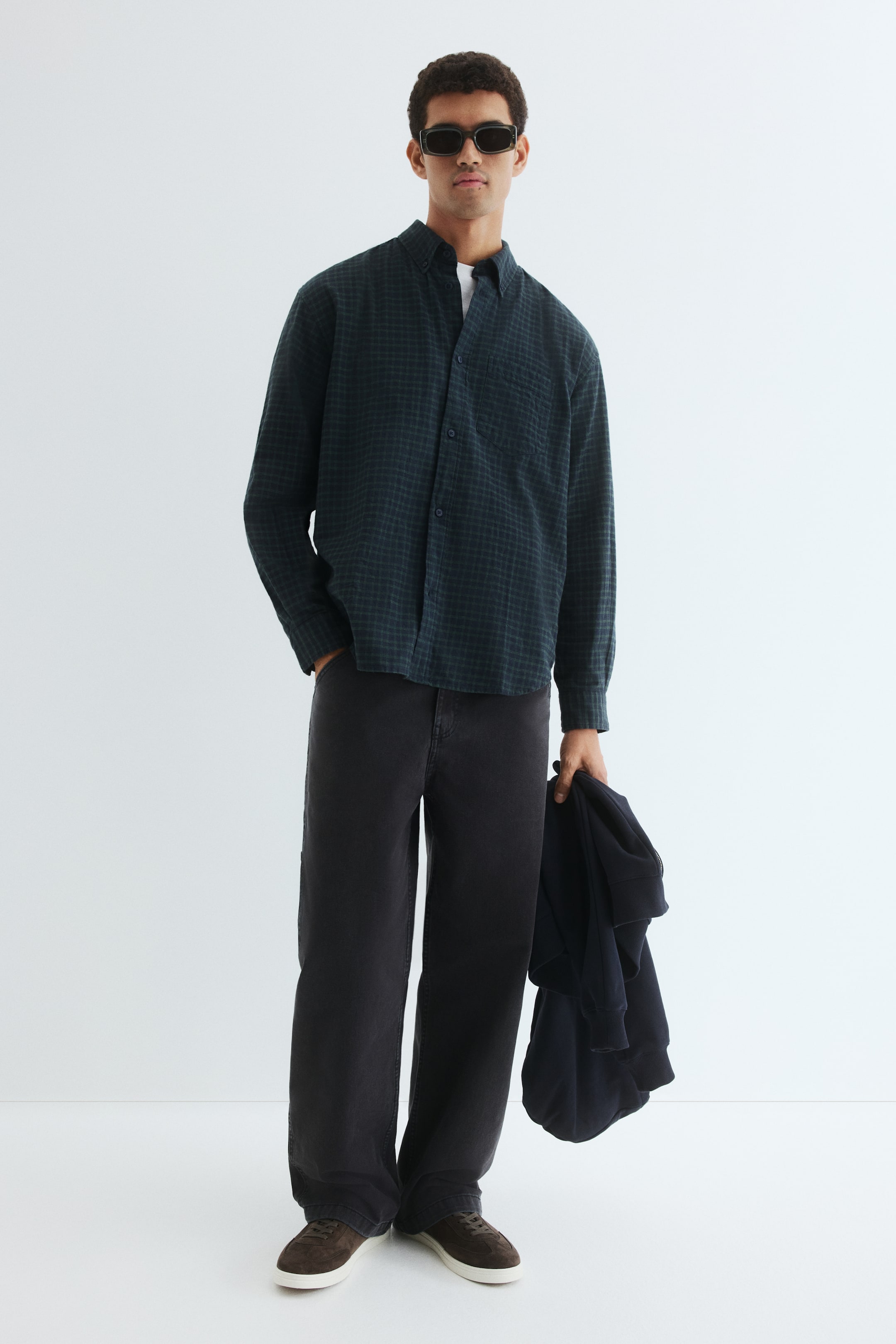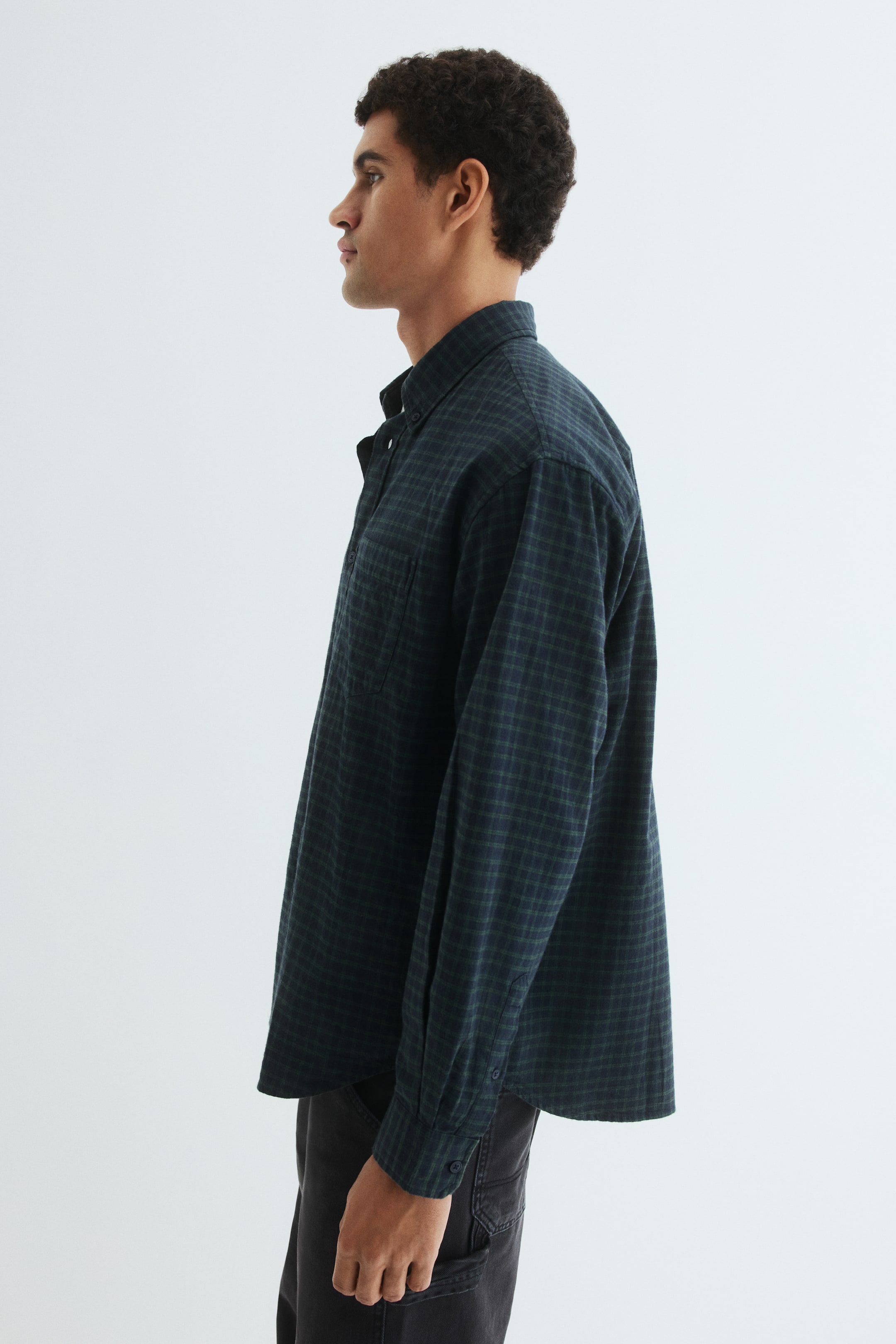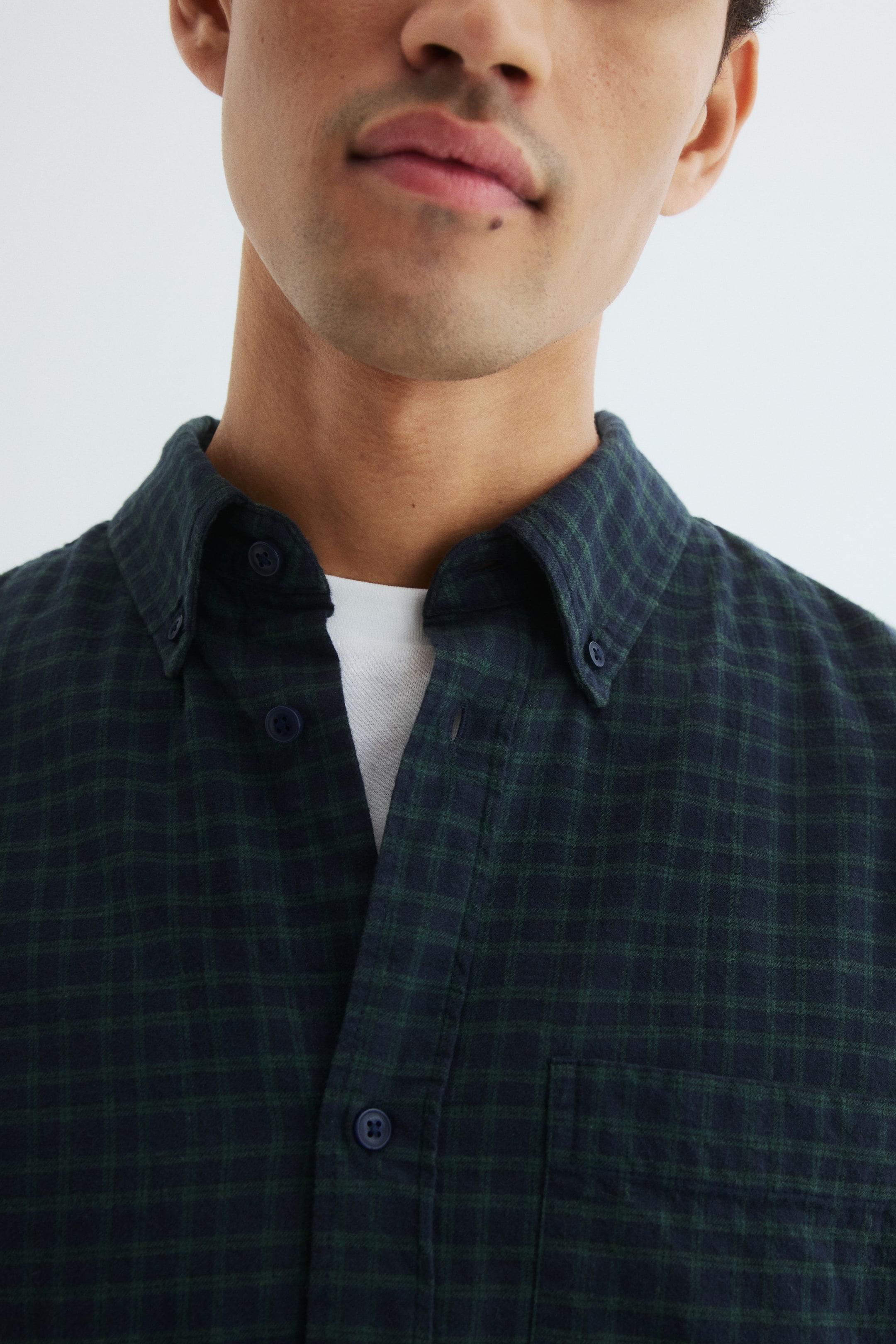 Camicia in morbido tessuto di cotone. Colletto button-down, abbottonatura classica, un taschino aperto. Carré dietro. Maniche lunghe con fessino e polsino da abbottonare. Bordo arrotondato in basso. Linea ampia per una vestibilità comoda ma non oversize.
